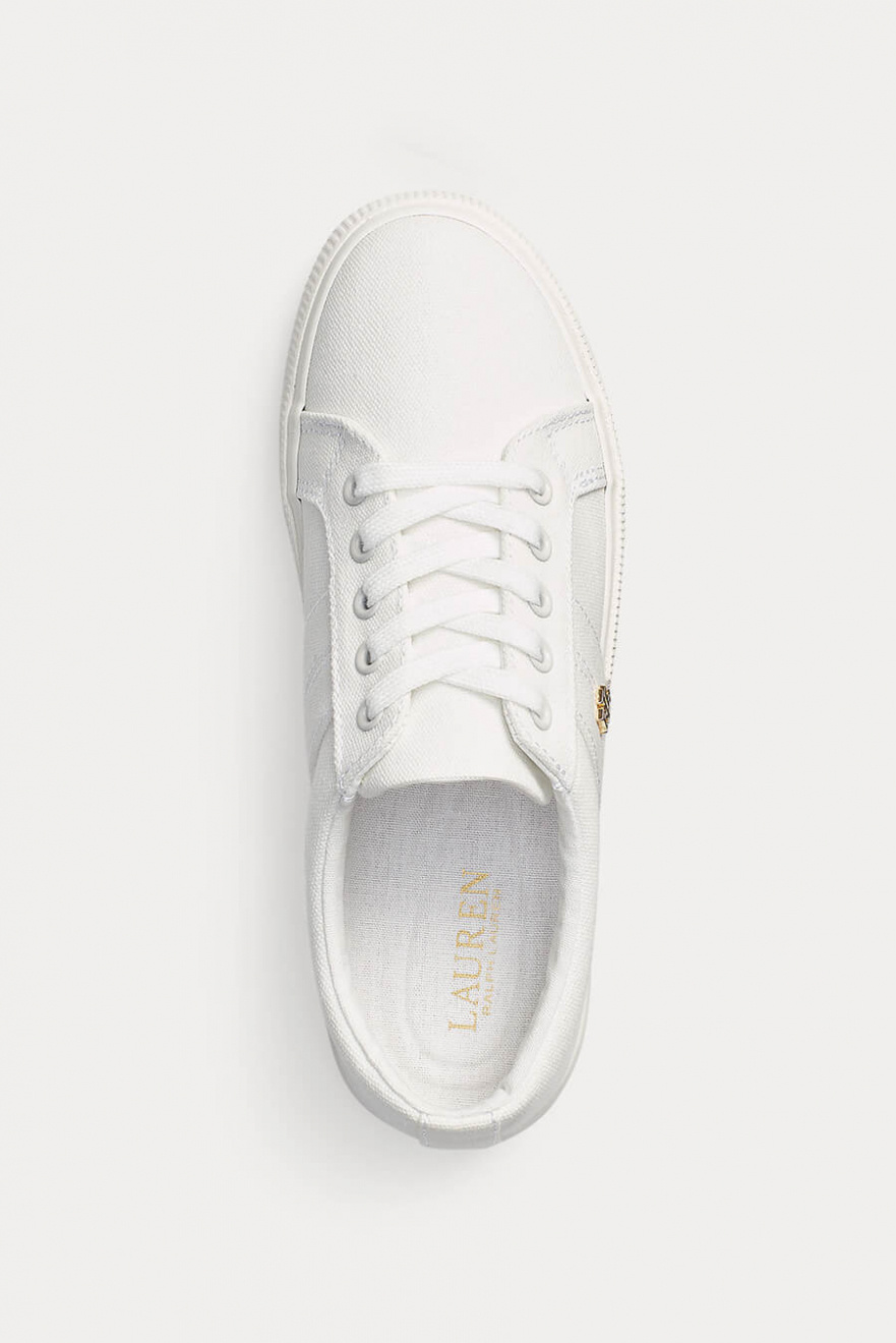 White canvas sneakers – the obvious companion for spring and summer. Light, cool and timeless with the perfect relaxed feel. Just as stylish with linen trousers as with jeans.Canvas sneakers with logo on the side, rounded toe and outsole in rubber from Lauren Ralph Lauren.