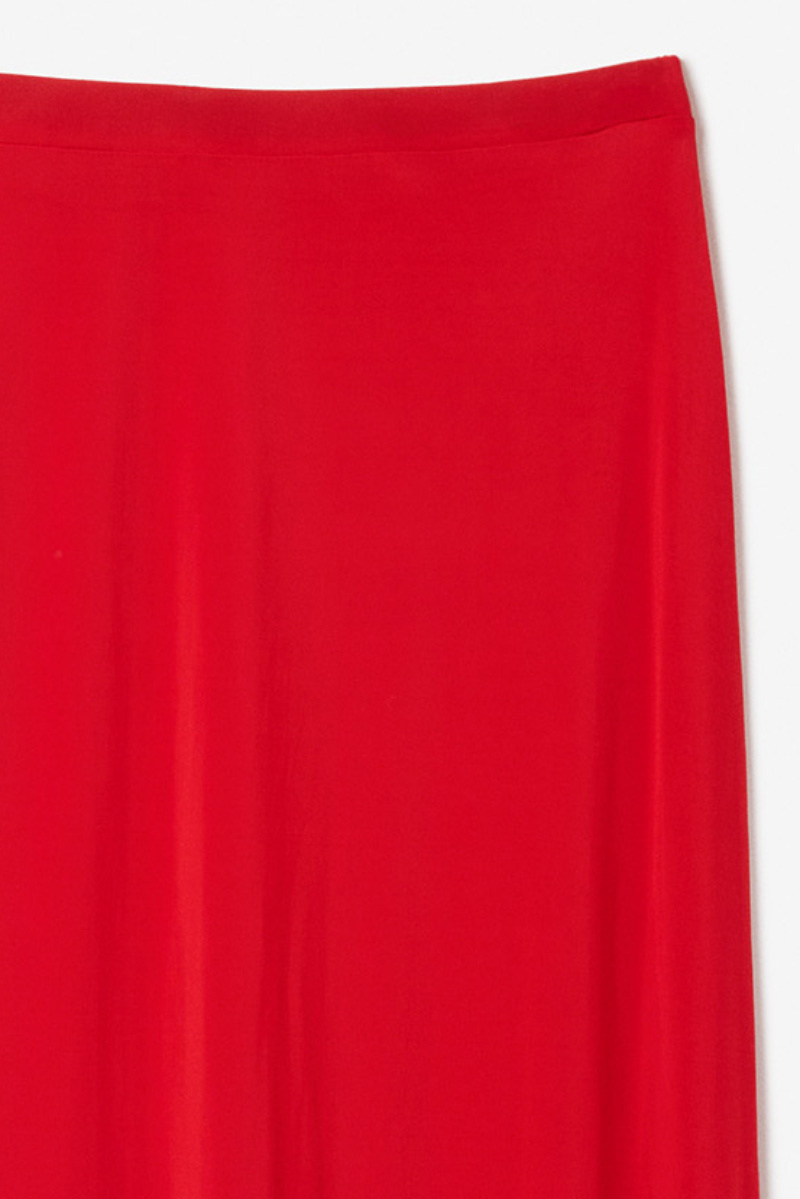 A straight-fit red jersey maxi skirt is a statement in itself, with the colour bringing the whole look to life. Style it with a white shirt for a fresh feel, or with a knitted top and heels for evening dinners.Maxi skirt in jersye with elastic waistband, slit back, slim and straight fit from Dagmar.