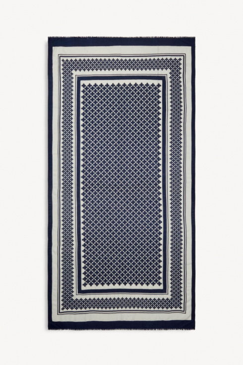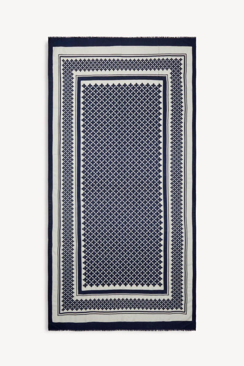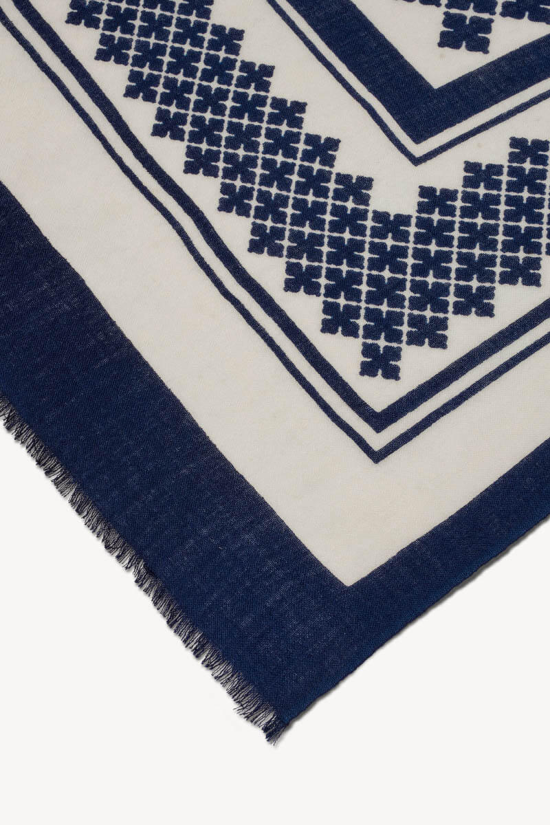 Rectangular scarf with fringe details and the characteristic floral print from By Malene Birger.