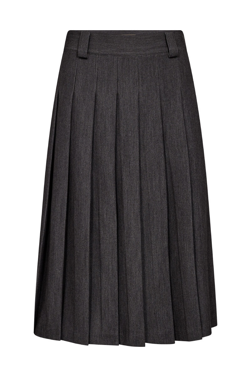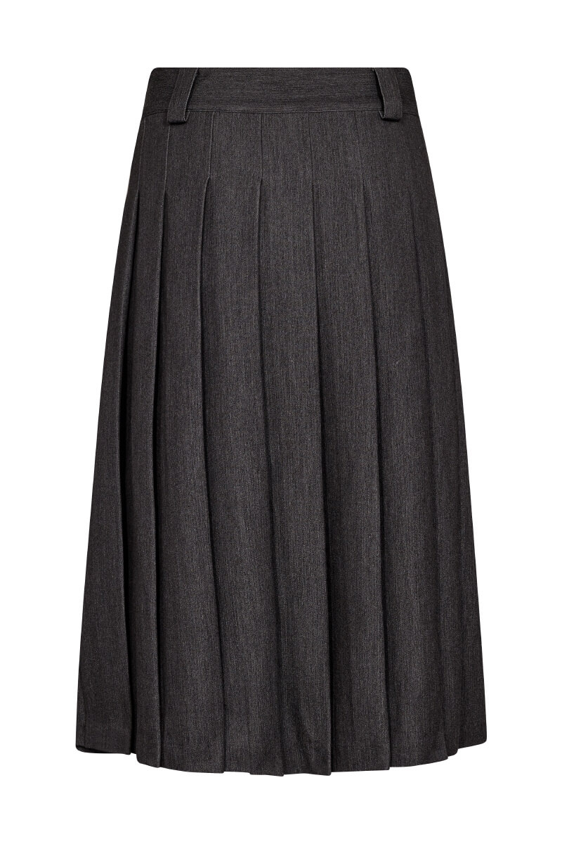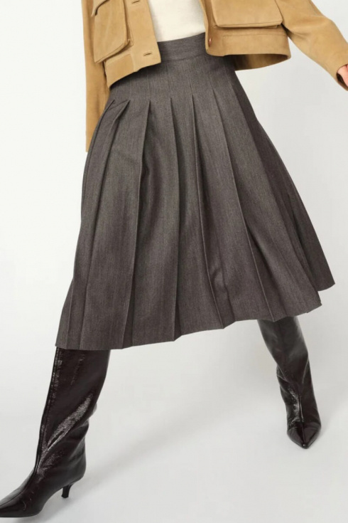 A mid-rise, calf-length pleated grey skirt that moves elegantly with every step. Style with an oversized cashmere sweater and loafers for casual luxury, or a lace blouse and heels for a sophisticated, timeless look with a modern edge.Pleated skirt in a viscose blend with calf length, mid waist, closes with a hidden zipper on the sides and beltloops from MosMosh.