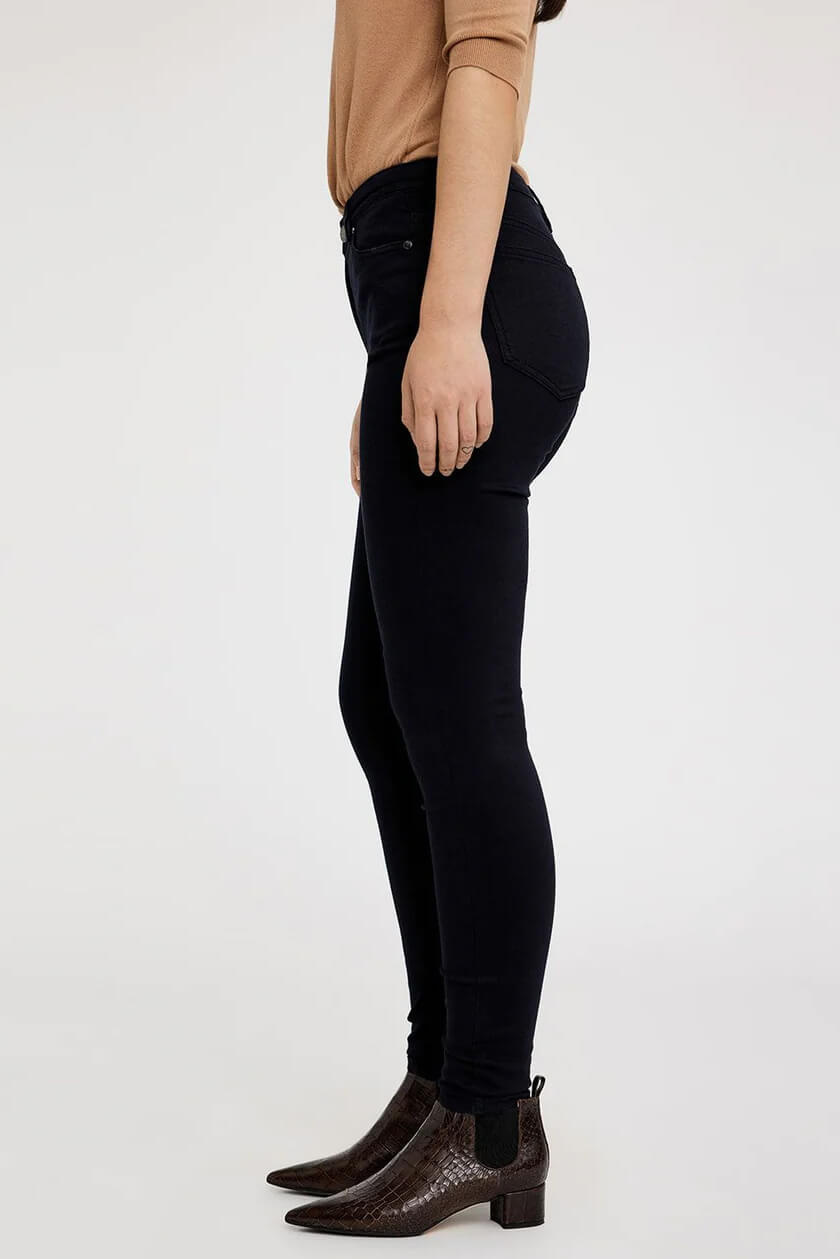 Lovely jeans for every day.'Kate' are classic, five-pocket, skinny-fit jeans you can wear all day, comfortably—in your own way. These are crafted from mid-weight, stay-black denim with 20 % recycled cotton and a comfortable stretch. Being mid-waisted, constructed them to rest on your hip bone, and their fit makes them sit very close to, support and accentuate your body.