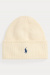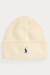 Elevate your winter style with this white knitted wool hat. Soft, warm and timeless, it provides both comfort and elegance. Perfect to complete your look on cold days.Knitted beanie in wool with folded up edge, small embroidered logo front and unlined from Polo Ralph Lauren.