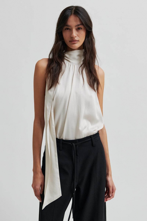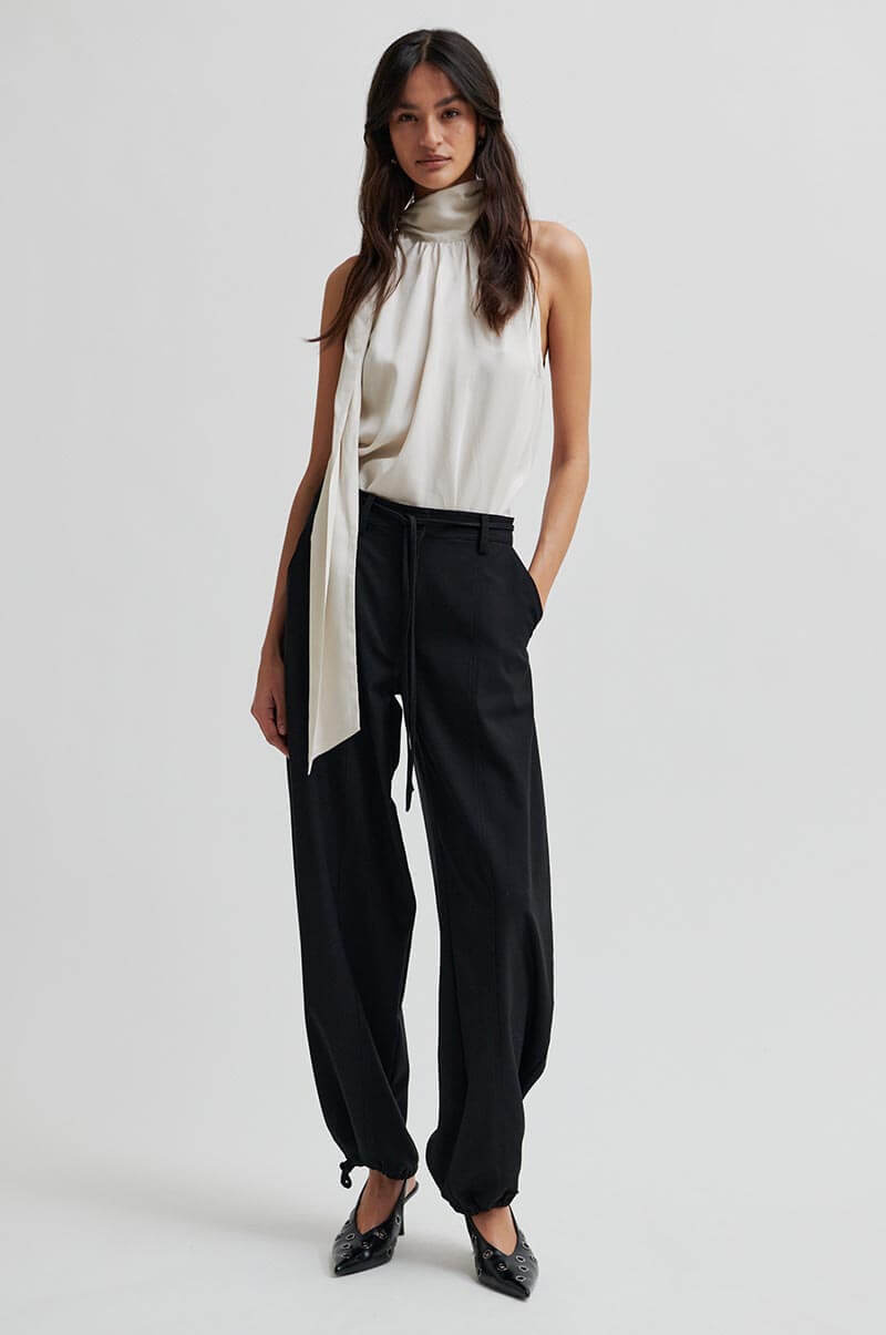 An elegant piece that perfectly balances timeless style with a festive touch. Pair it with a skirt or wide-leg trousers for a sophisticated look. The tie detail at the neck adds a chic accent, while the relaxed fit at the hem ensures comfort and ease.