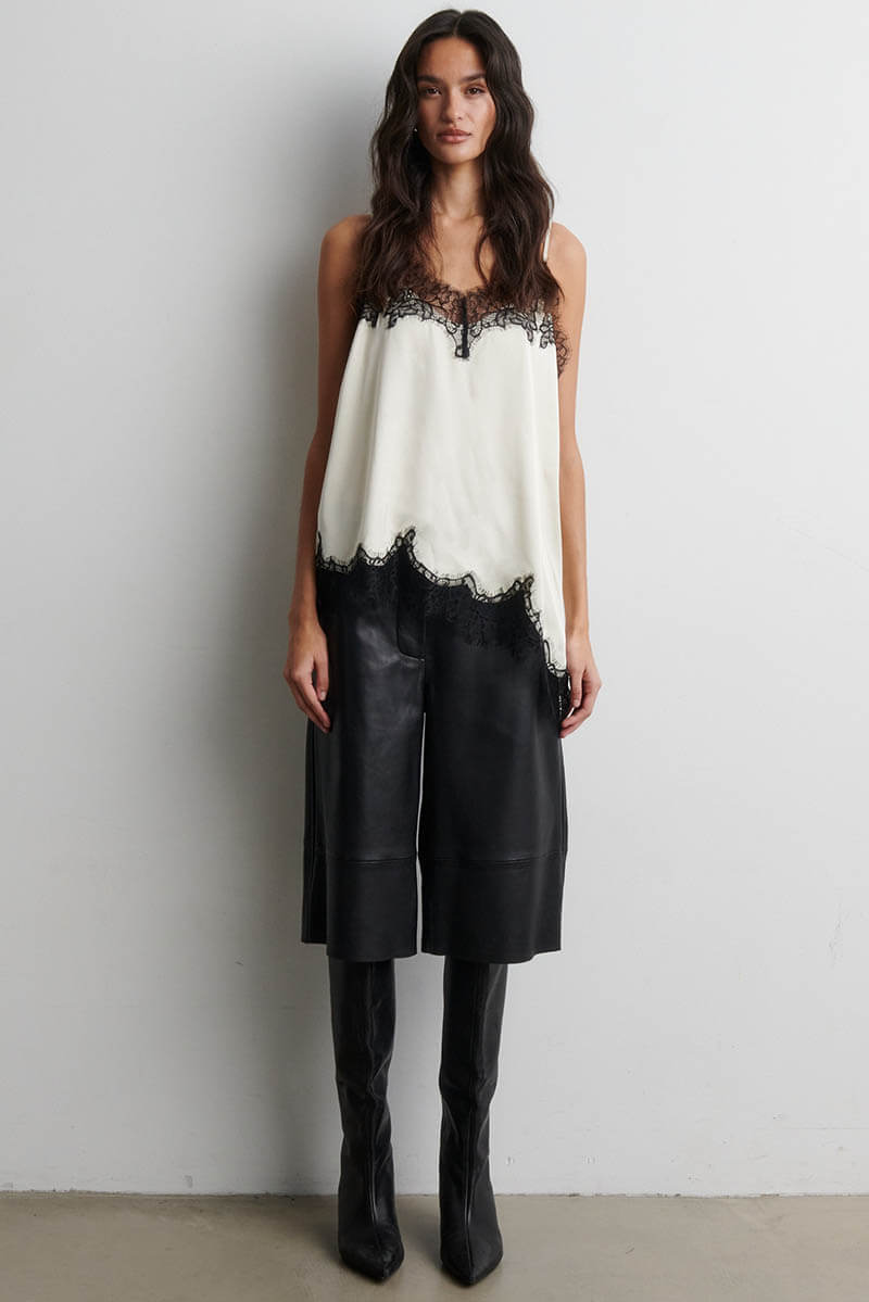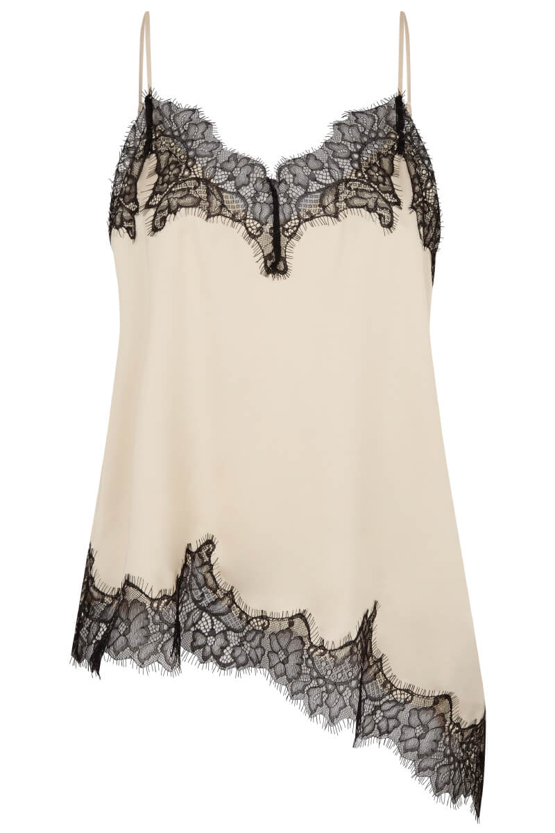 An elegant top with an asymmetrical hemline that creates a modern silhouette with a romantic touch. The top is made from a soft viscose blend that drapes beautifully against the body and is complemented by thin shoulder straps for a light and feminine look. Perfect to wear under a knitted sweater with either a skirt or trousers.