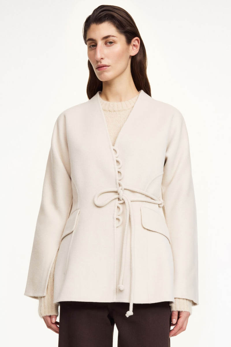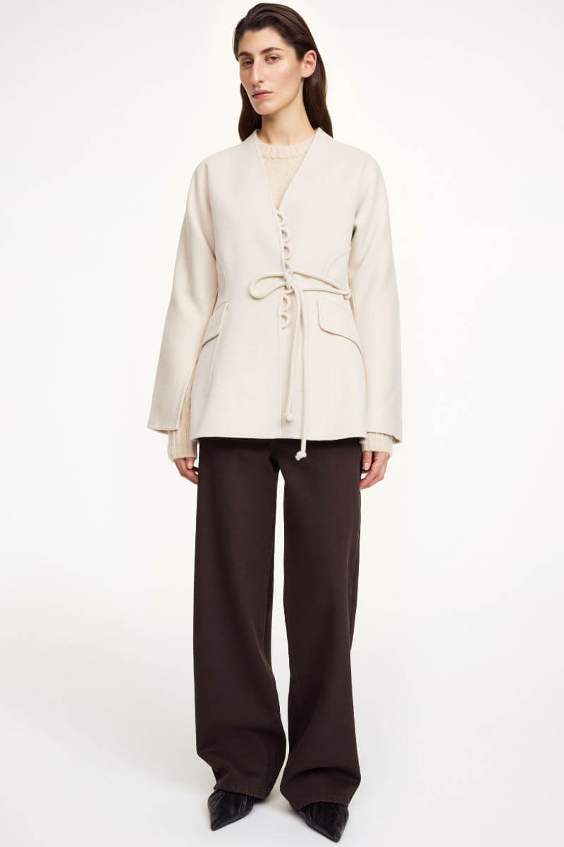 A feminine and warmer take on the classic blazer. This blazer is crafted from elegant, felted wool and features a wrap construction with an adjustable tie that offers creative ways to style it. The deep sleeve slits add a subtle and modern detail. Style it with jeans for a contemporary everyday look or with a skirt for a classic yet refined evening outfit.