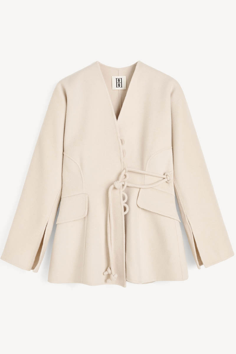 Wrap blazer in felted wool with adjustable tie, front pockets and sleeve slits from By Malene Birger.