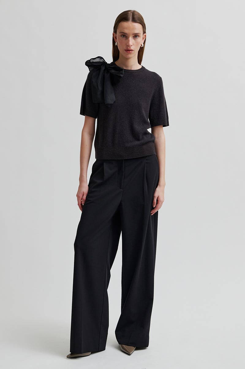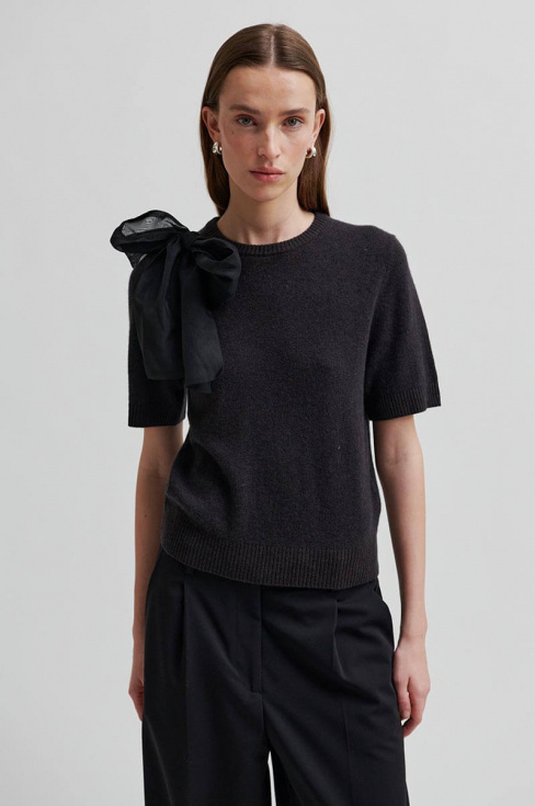 The removable bow, attached like a brooch, adds a sophisticated detail and makes it easy to change up your look. Crafted from a fine, lightweight knit that feels soft and comfortable against the skin.