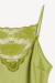 A lace-edged tank top in a bright green with a shiny finish and narrow straps – where soft luster meets chic. Wear it with jeans, a suit or under a jacket. A silky statement piece that turns simple styling into something memorable.Soft tank top in a nice sheen with lace details at the front, adjustable shoulder straps and a regular fit from By Malene Birger.
