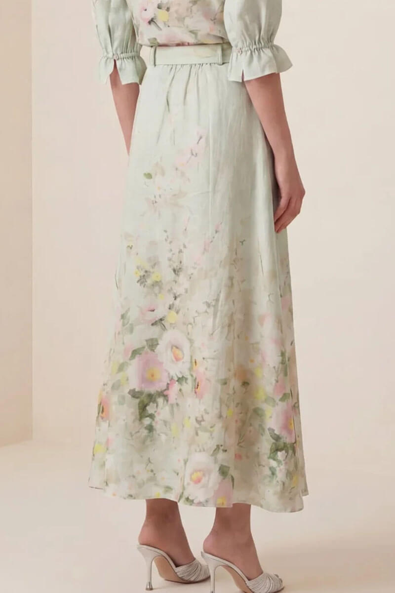 The Linen Maxi Skirt is crafted from our fine quality of OEKO-TEX Certified linen. The skirt has a maxi length and a flowy A-line silhouette. It comes with a matching belt and features a side zip closure.