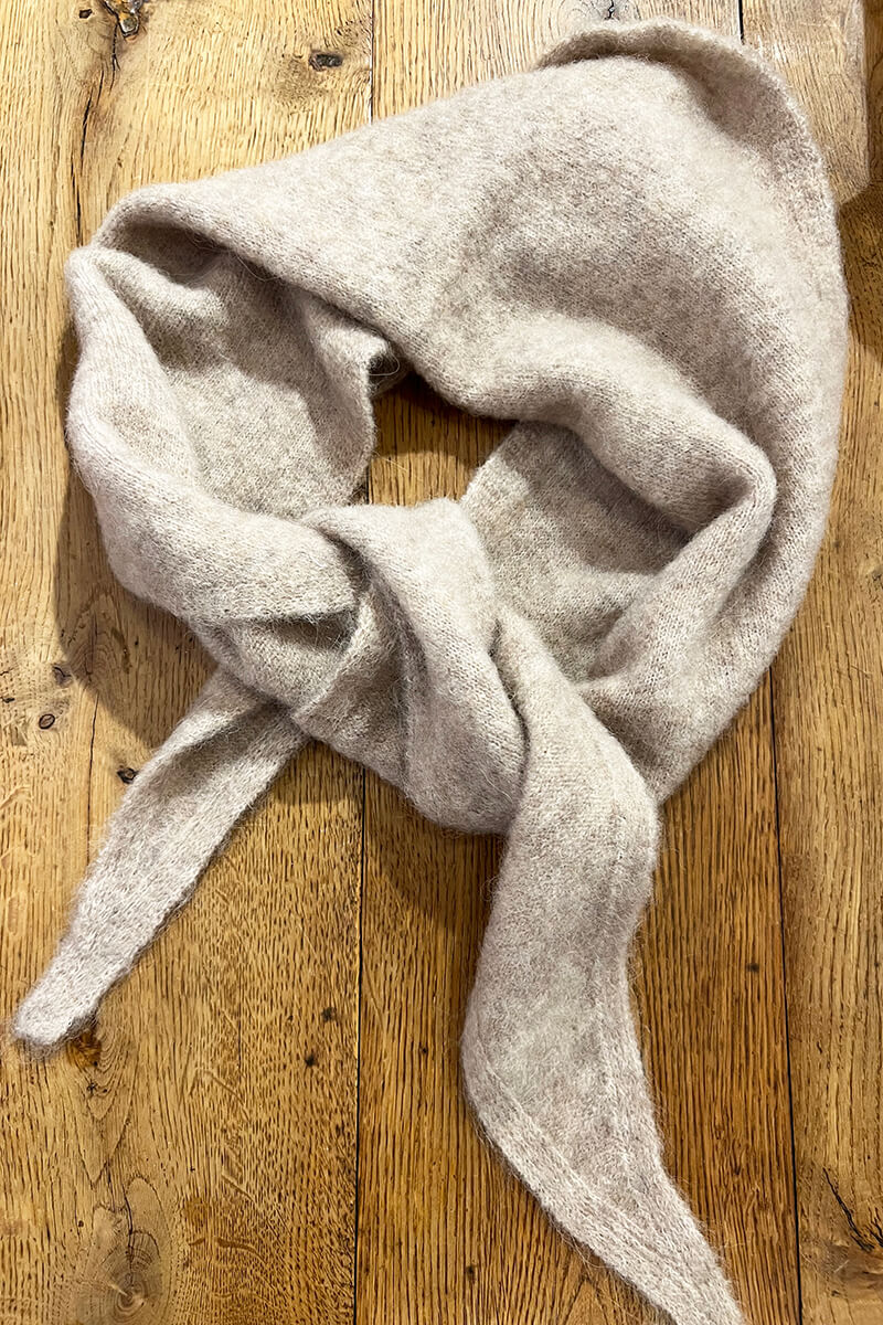 Small wool scarf in a triangle form and small logo from Sibin Linnebjerg.- 48% Baby Alpaca 20% Wool 20% Polyamide 2% Elastane