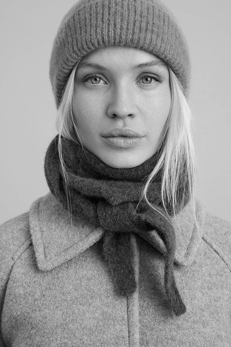 The scarf is perfect for giving your outfit a stylish touch while keeping you warm. A timeless accessory that elevates everyday clothes with ease.Small wool scarf in a triangle form and small logo from Sibin Linnebjerg.