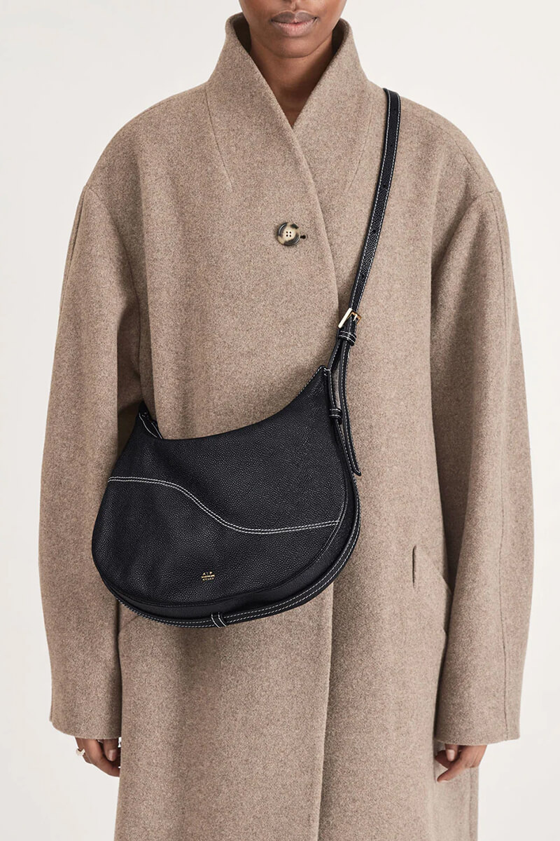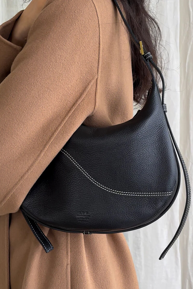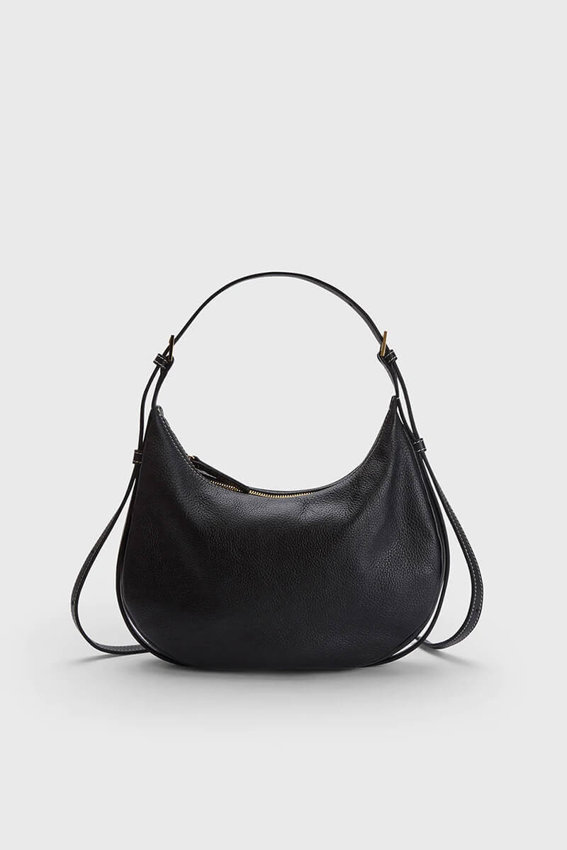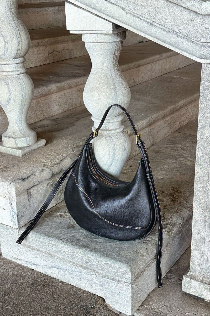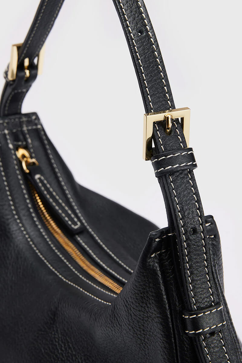 Liveri Small Hobo Bag, Black Contrast Stitch Grained Calf