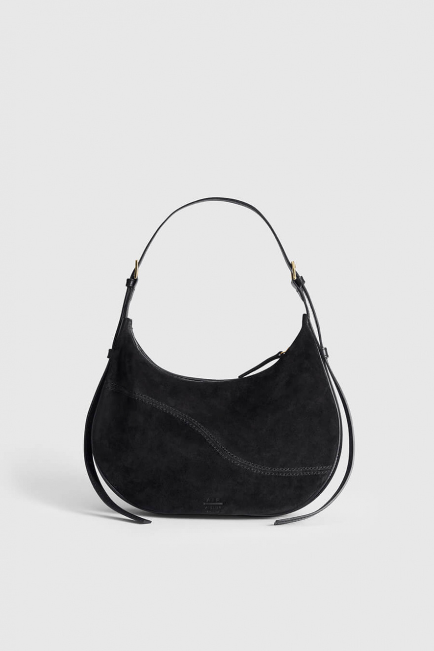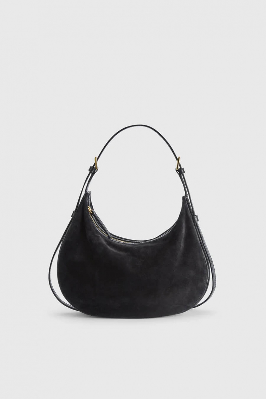 Liveri Small Hobo Bag, Black Suede Vacchetta