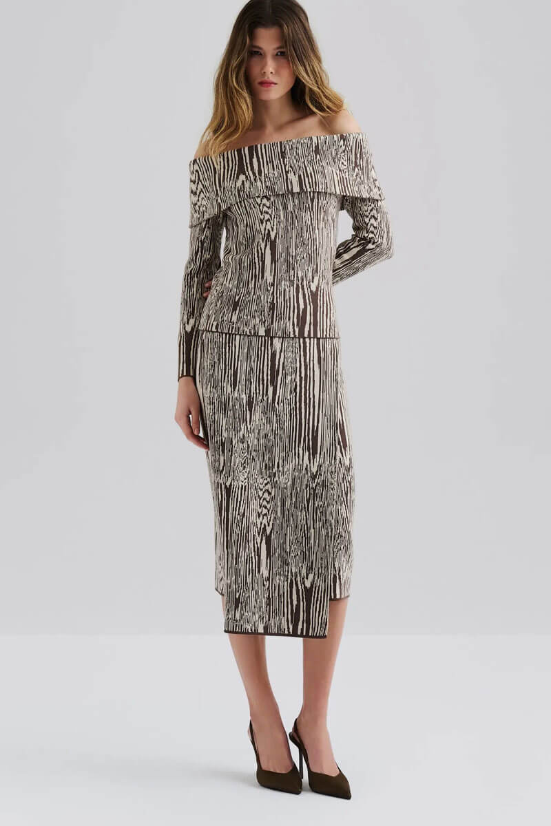 Lois Jaquard knitted Wrap midi skirt, Moire