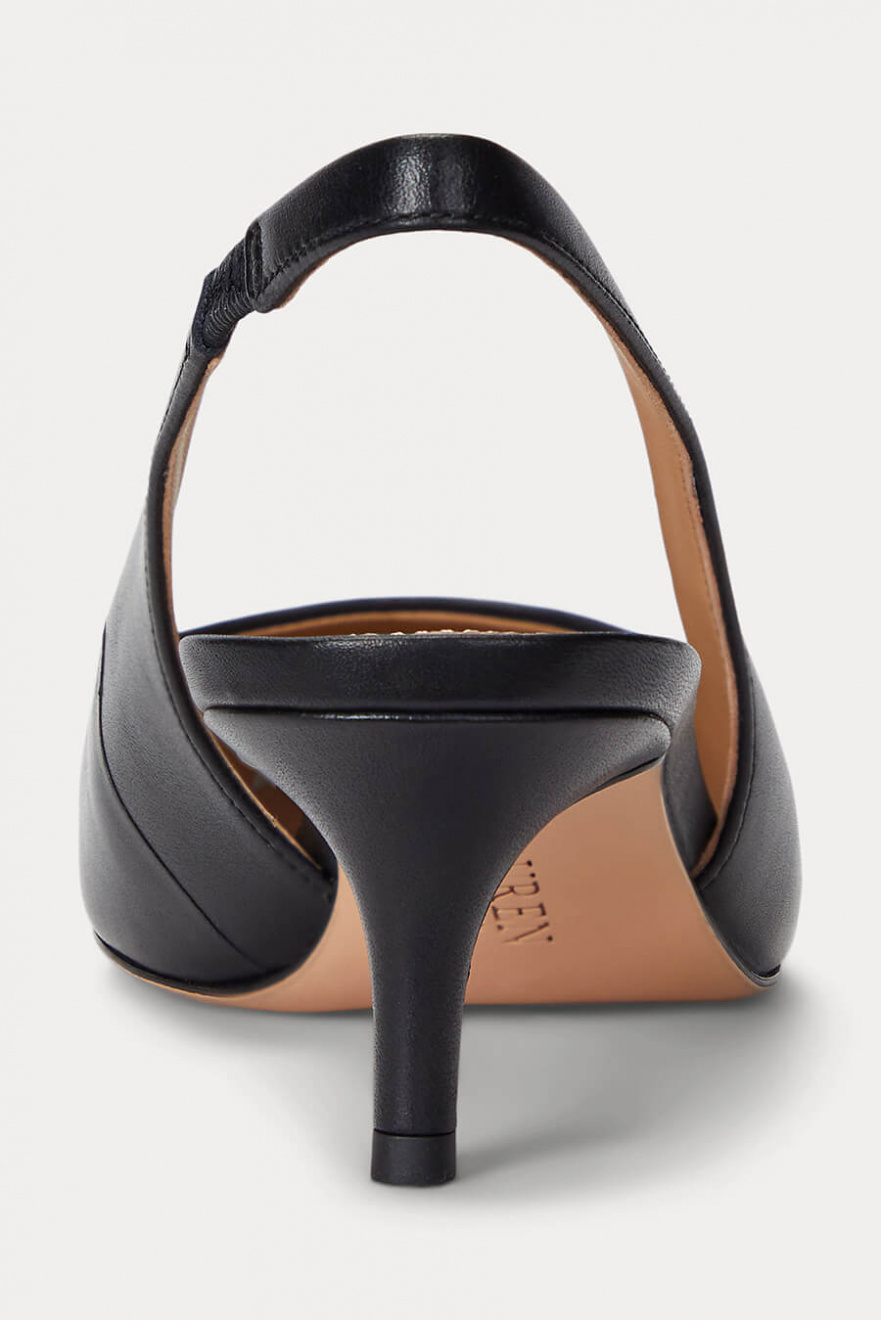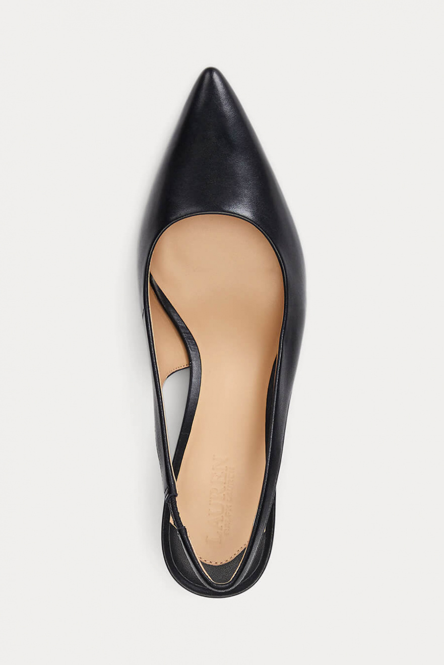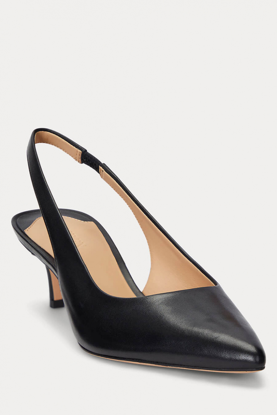 Black slingbacks in soft leather - a lesson in timeless elegance. Low heel for the perfect balance between comfort and style. Equally right with tailored trousers as with an airy dress. A discreet statement shoe you can always rely on.Slingbacks in soft leather with short heel, pointy toe och sole in leather from Lauren Ralph Lauren.