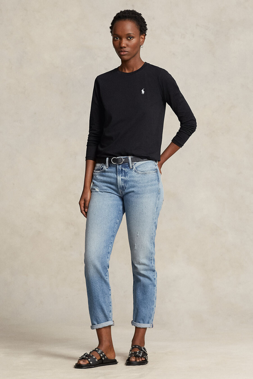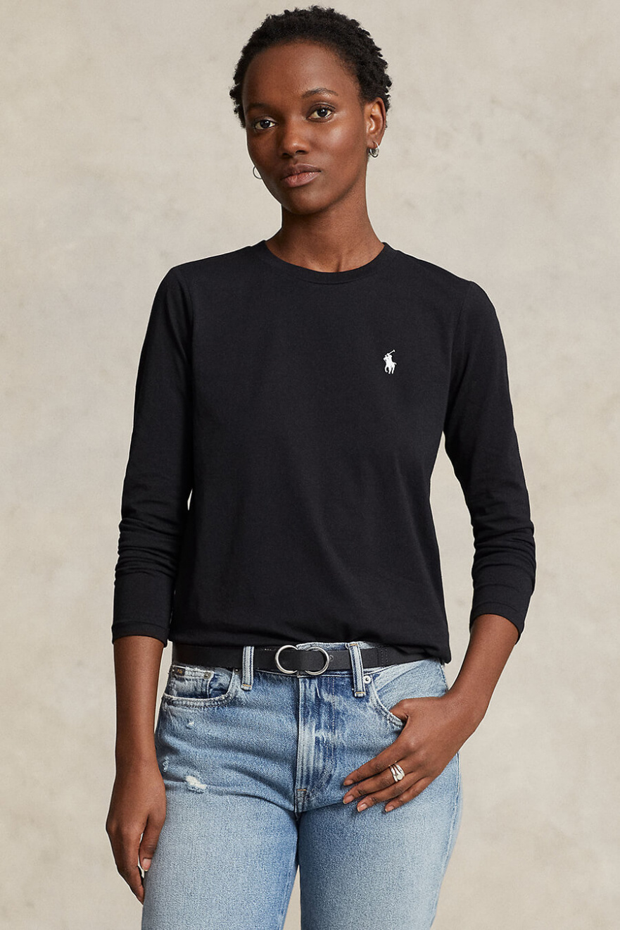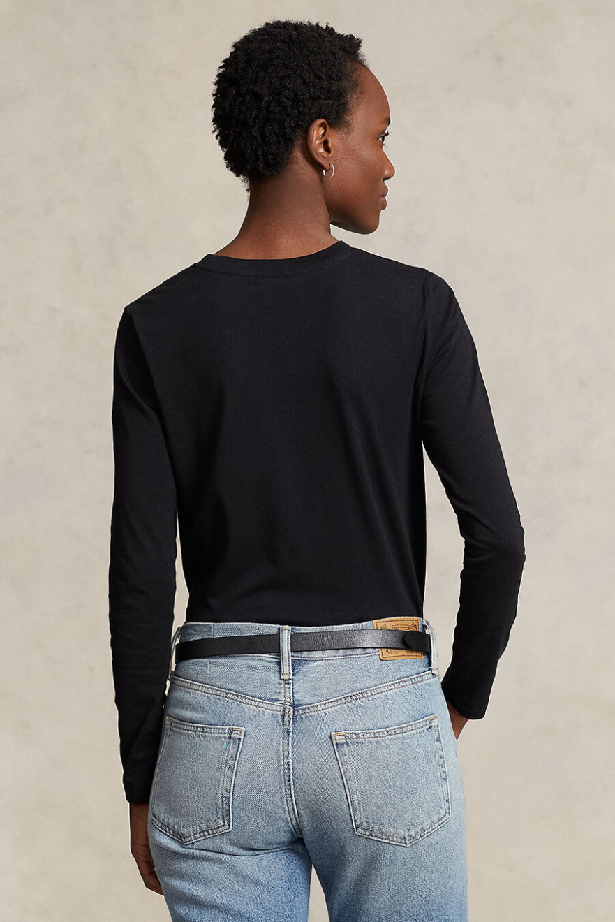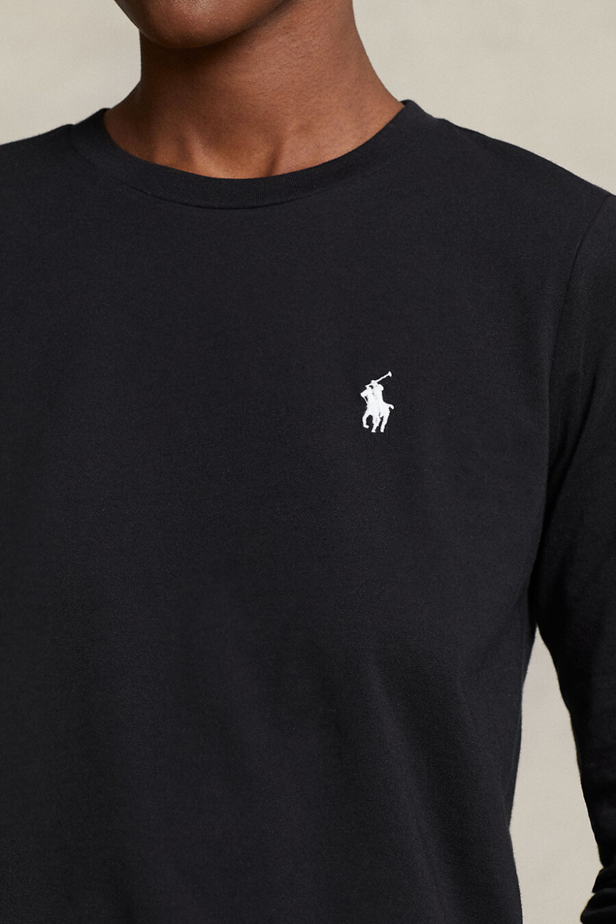The black long-sleeved T-shirt is an indispensable basic garment that combines simplicity with style. Perfect for any occasion, it offers both comfort and a timeless look.Long sleeved t-shirt in cotton with round neckline, small embroidered logo and straight fit from Polo Ralph Lauren.