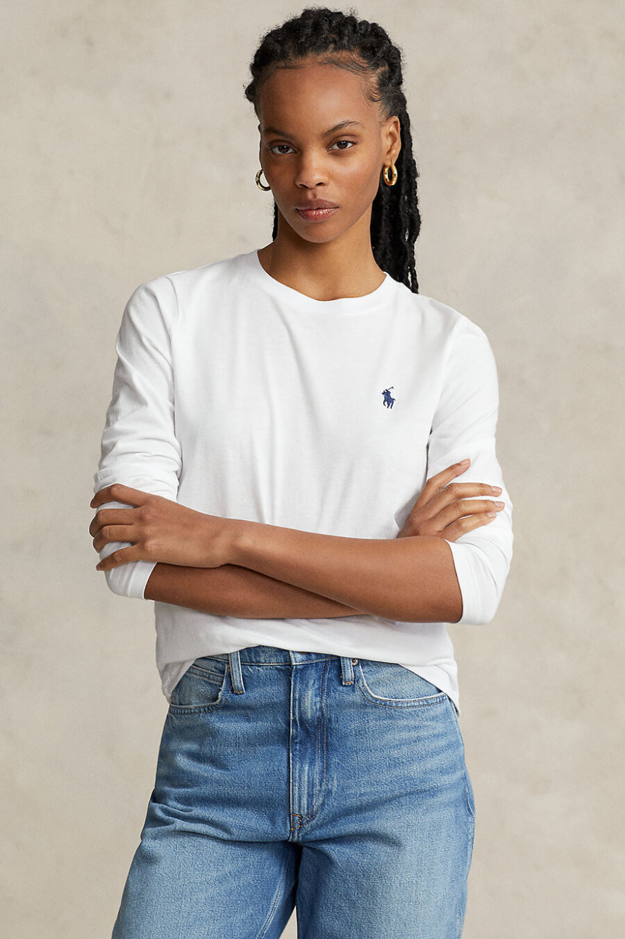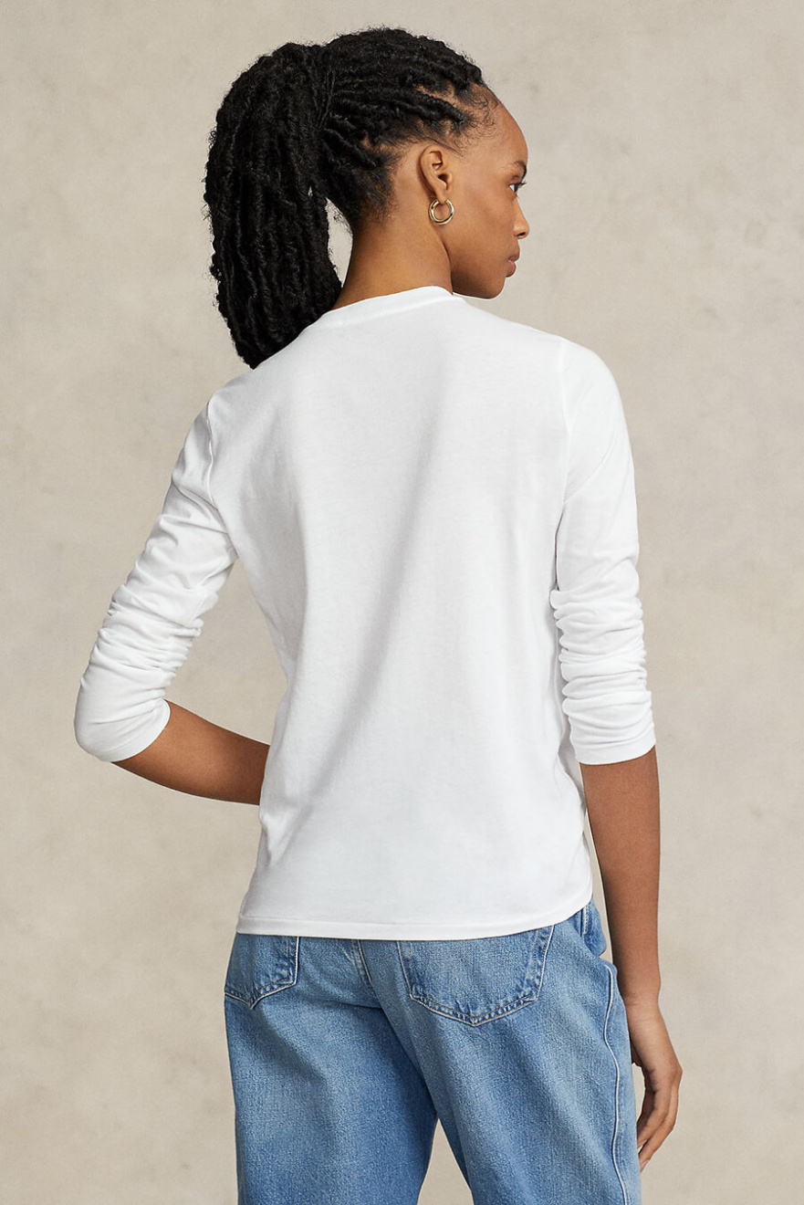 The white long-sleeved T-shirt is a timeless and versatile favourite. Perfect for layering or wearing solo, it offers both style and comfort for any occasion.Long sleeved t-shirt in cotton with round neckline, small embroidered logo and straight fit from Polo Ralph Lauren.