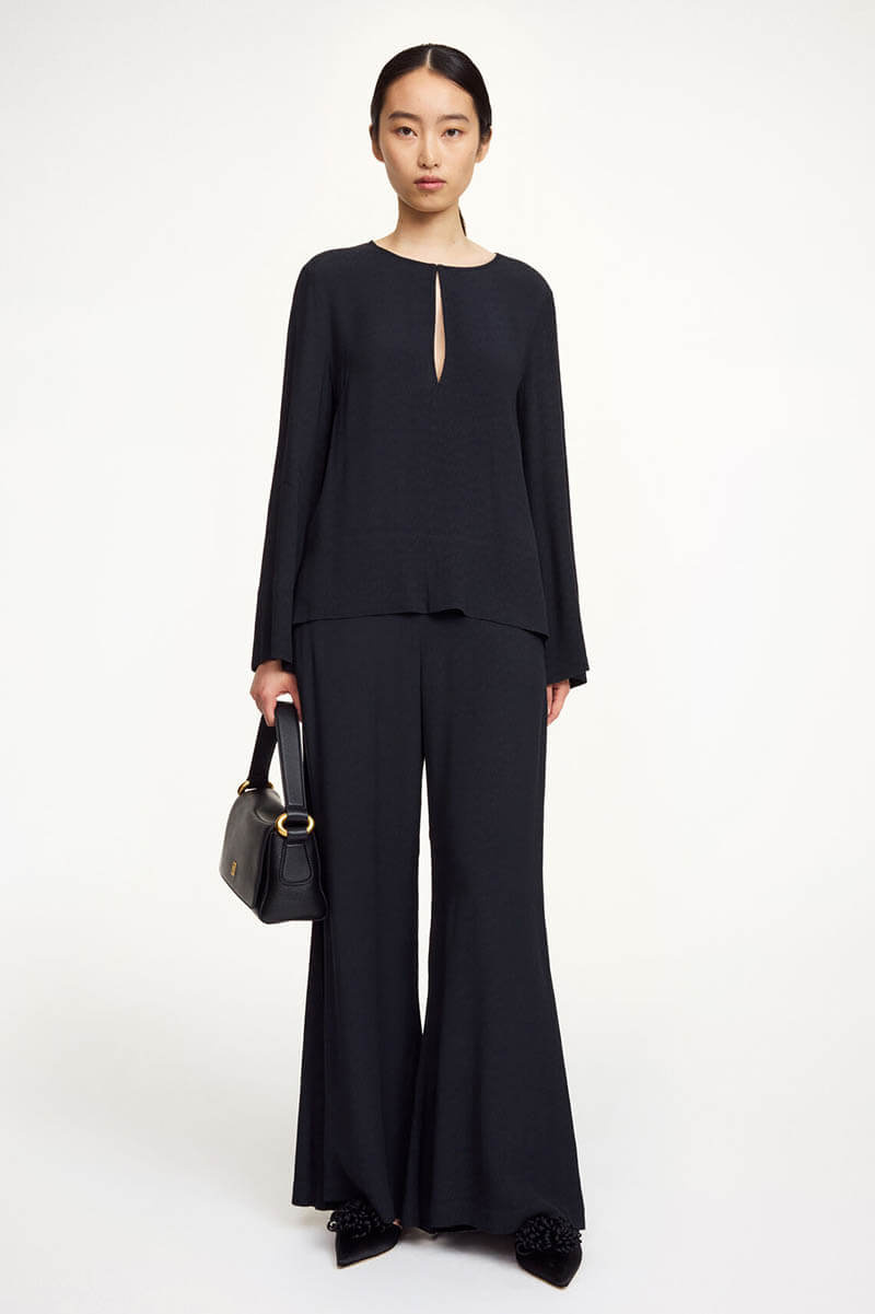 By Malene Birger’s Lucee trousers feature wide flared legs and a high waist. Take them from desk to dinner paired with an oversize blazer or bohemian blouse.