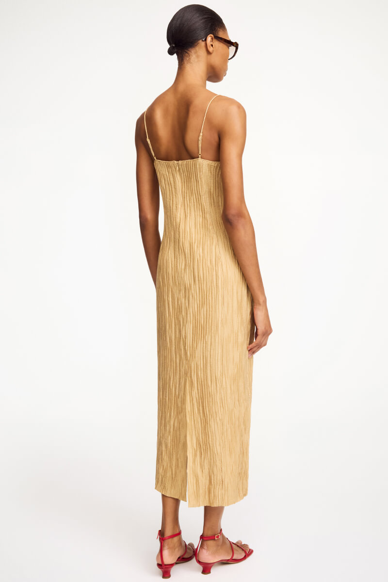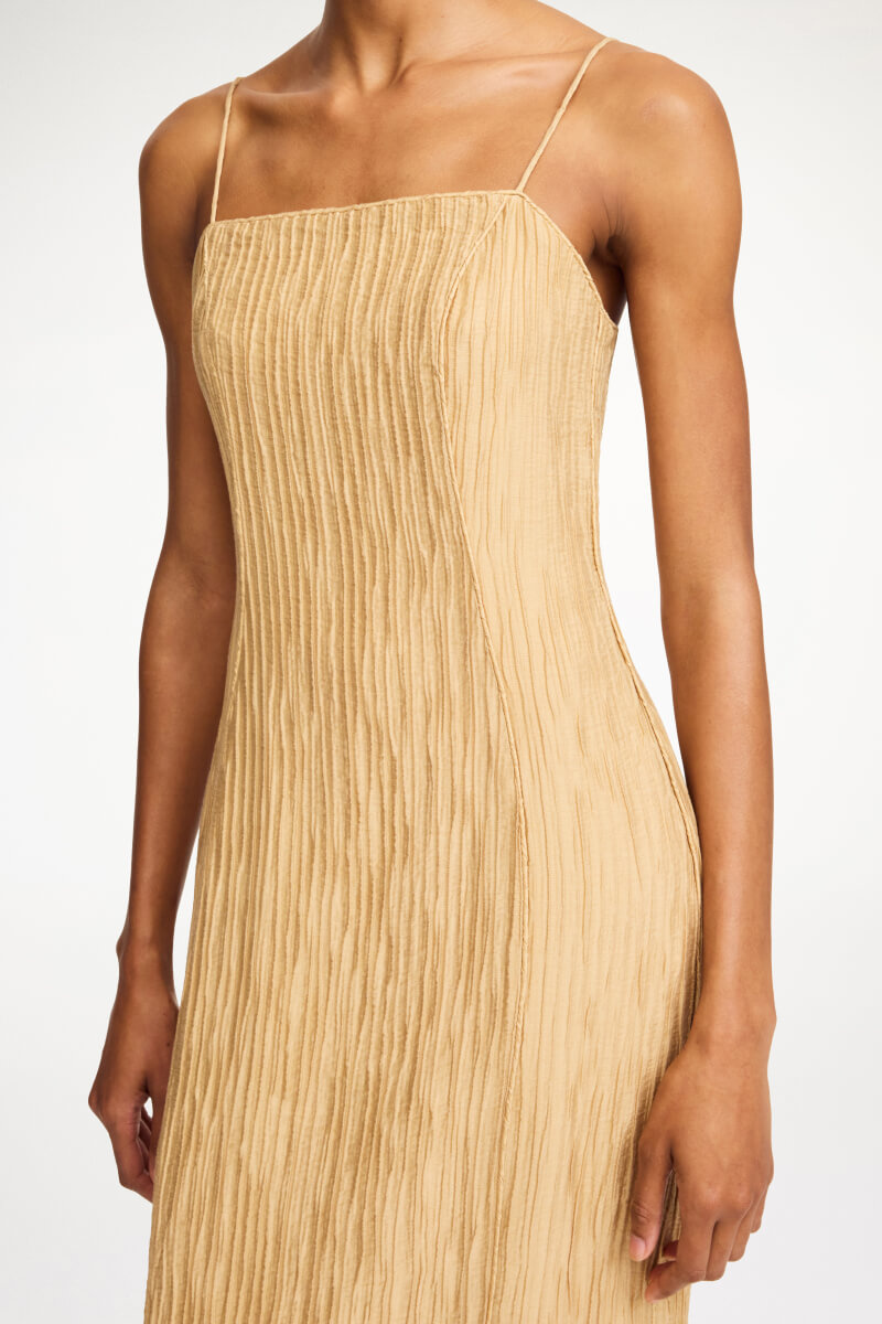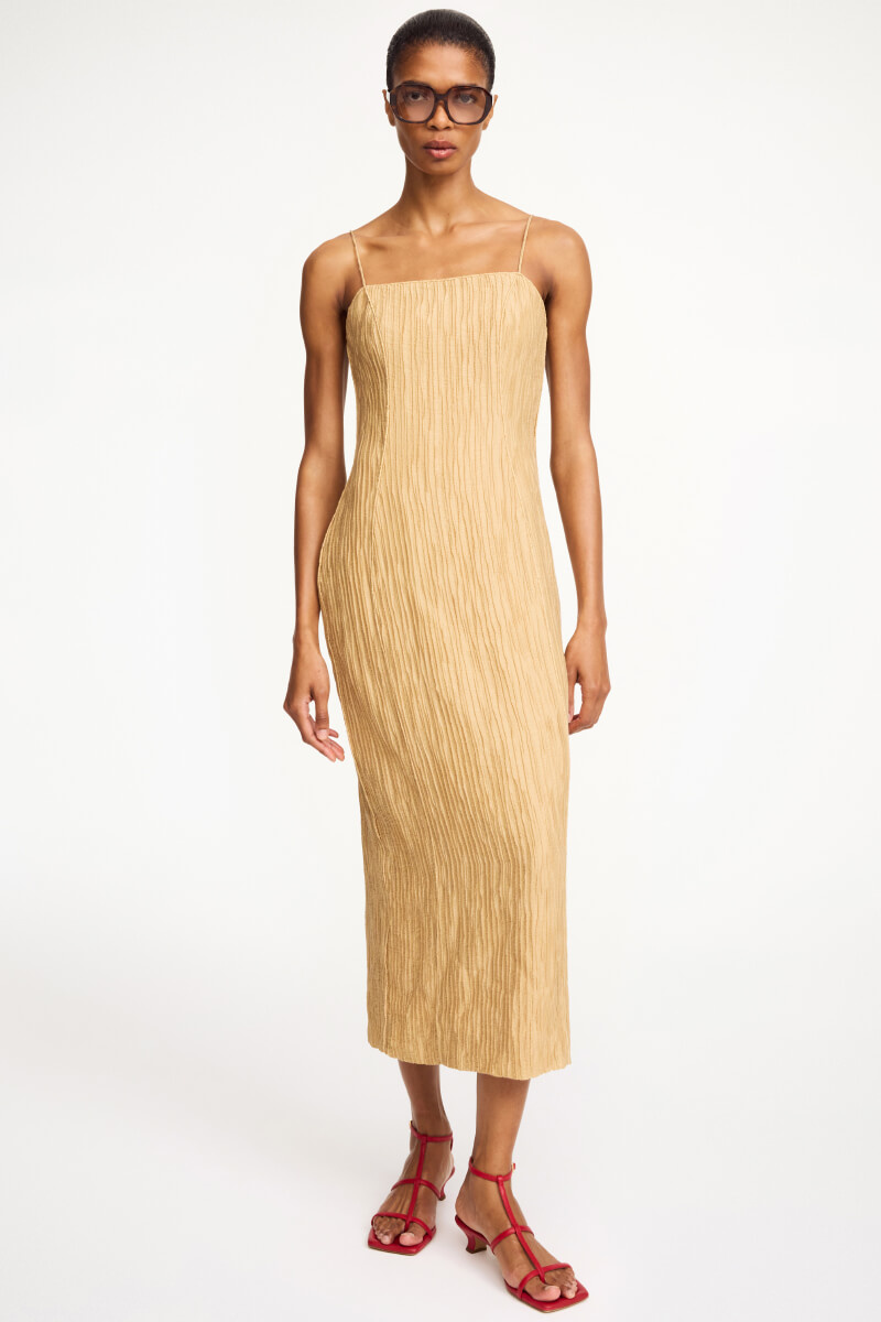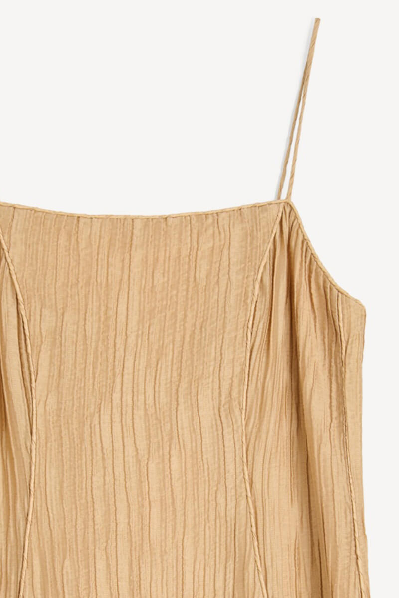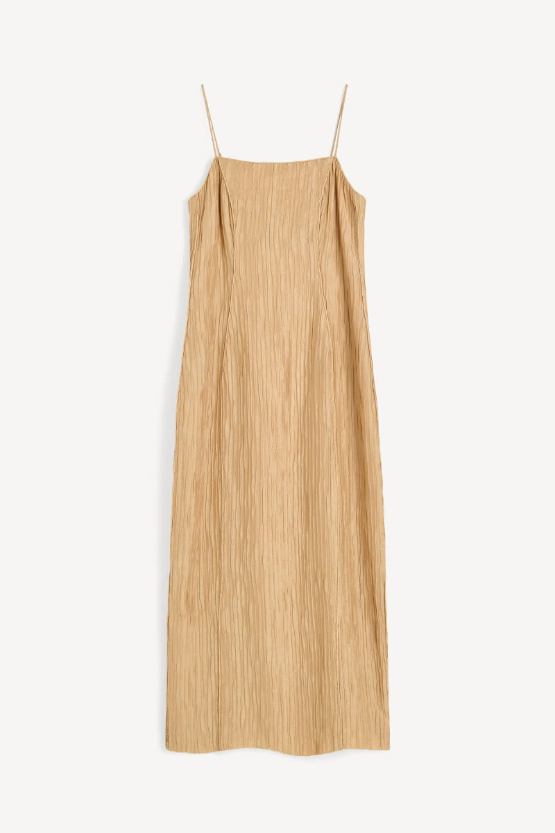 A pleated midi dress in a warm beige tone, with thin straps and a straight silhouette – the simplicity that always works. Wear it with sandals for all summer occasions.Maxi dress in a viscose blend with a straight neckline, slim fit, adjustable shoulder straps, back slit and is lined from By Malene Birger.