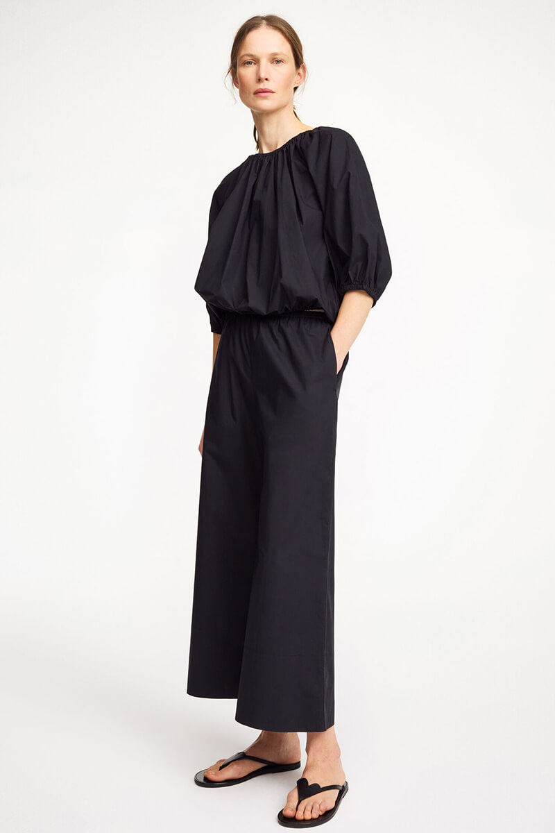 The design is shaped with an elasticated waistband, and falls to wide legs that crop just-so at the hemline. Continue its relaxed mood by styling with elongated silhouettes and languid knitwear.