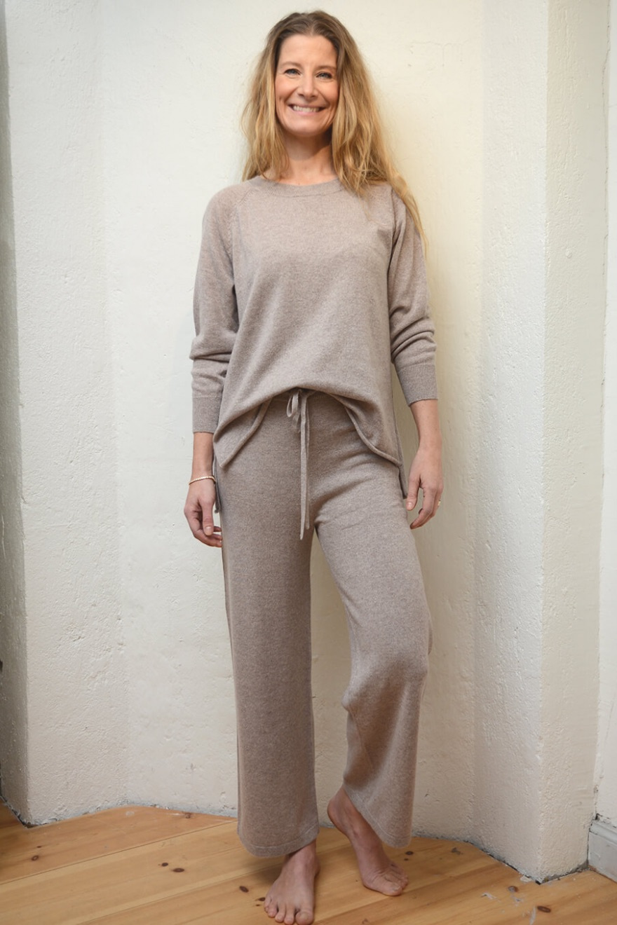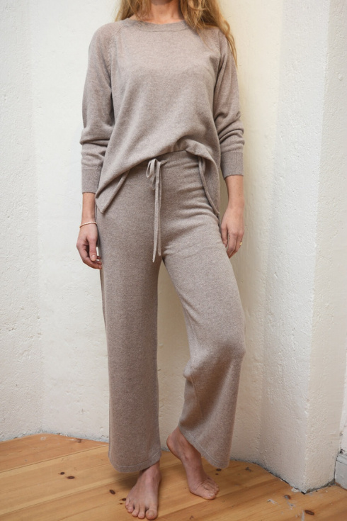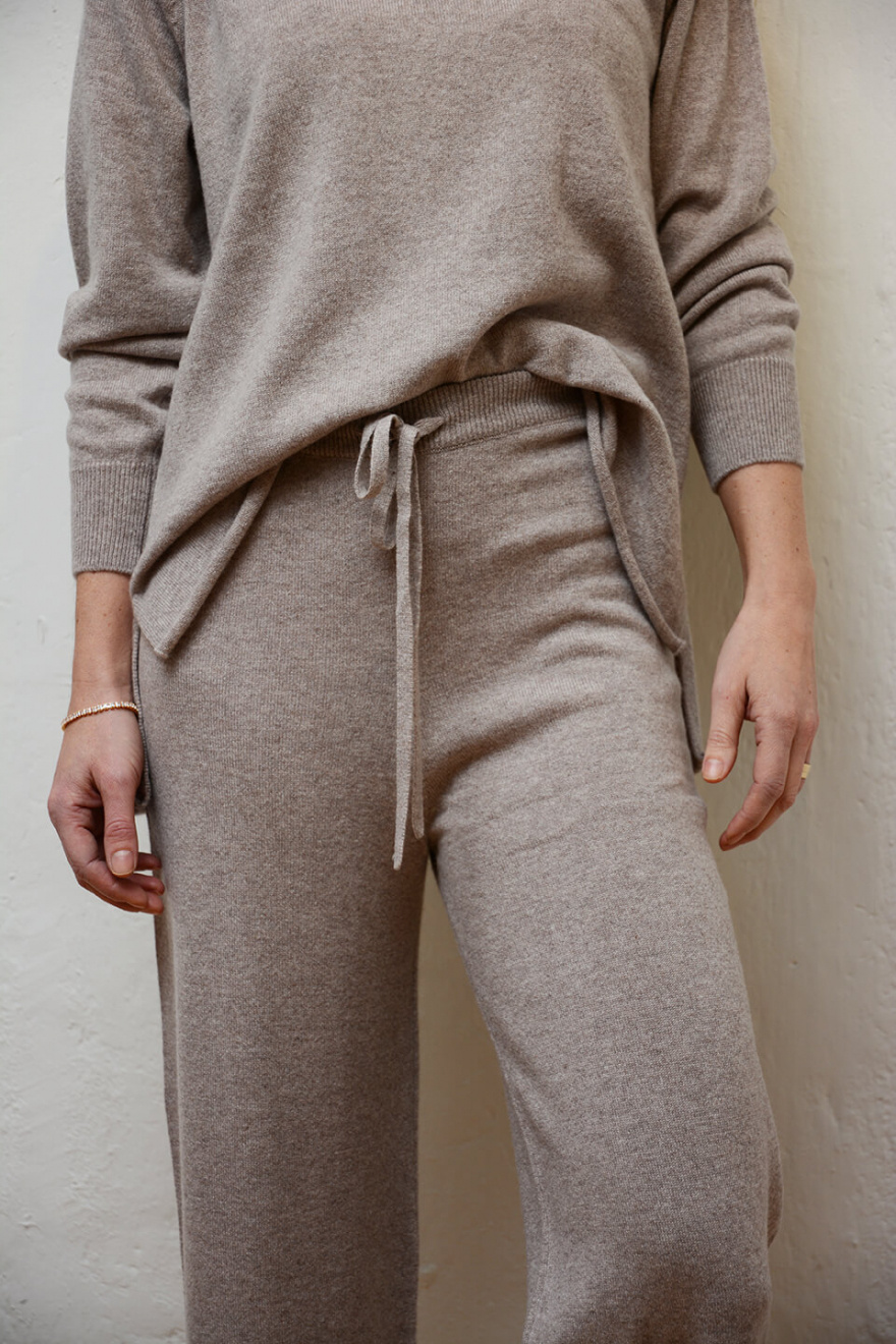 Knitted pants in a luxurious cashmere with drawstring at the waist, wide legs, ribbed edge and relaxed fit from Elin Maria Studio.100% Cashmere