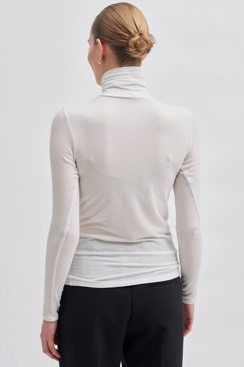 This long-sleeved polo top is an elegant classic. The smooth quality gently molds to the body, making the garment as comfortable as it is sophisticated. Perfect to wear alone or layer for a stylish, minimalist look.Thin ribbed top in a merino blend with a turtleneck, slim fit and long sleeves from Second Female.