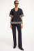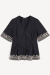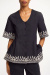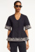 A black blouse in organic cotton with embroidered edges and a defined waist. Romantic and stylish - a key piece in your wardrobe. Wear it with jeans or a skirt for a sophisticated look with sustainable elegance and a feminine feel.Short-sleeved blouse in organic cotton with a deep neckline, a defined waist, button closure at the front and an embroidered pattern along the edges from By Malene Birger.