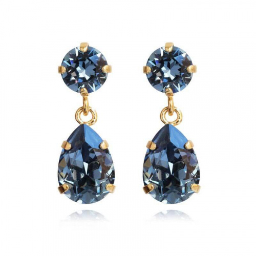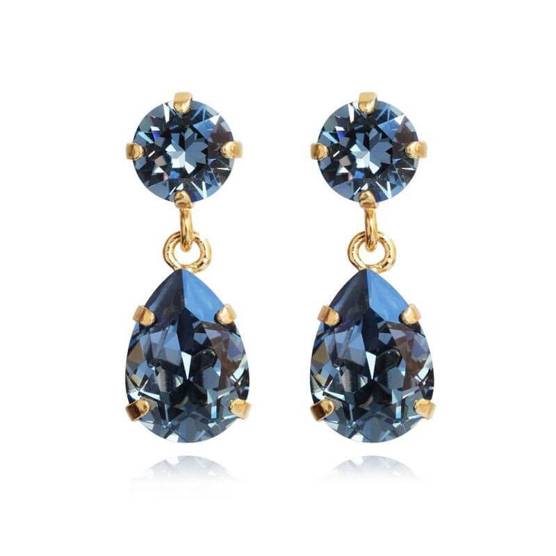 Mini Drop Earrings, Gold & Denim Blue