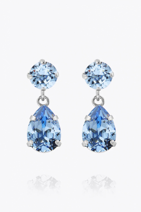 Mini Drop Earrings, Rhodium & Light Sapphire