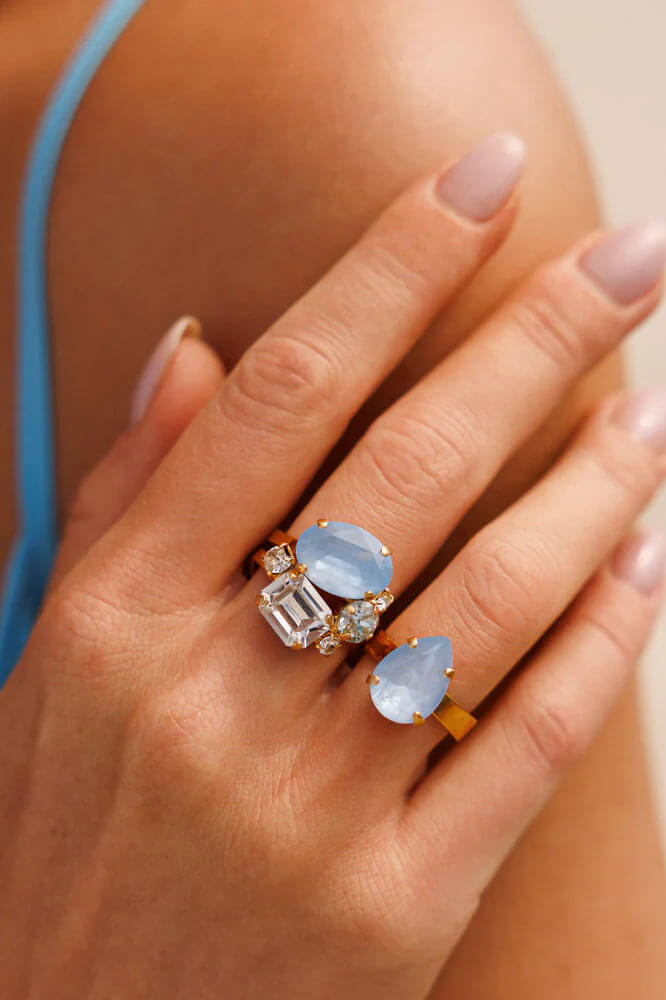 The Mini Drop Ring is adorned with a teardrop-shaped crystal of the highest quality and suits everyone thanks to its open back, which can easily be adjusted from approximately 16 to 21 mm. This ring is a perfect detail for any occasion and is available in several different stone colors.