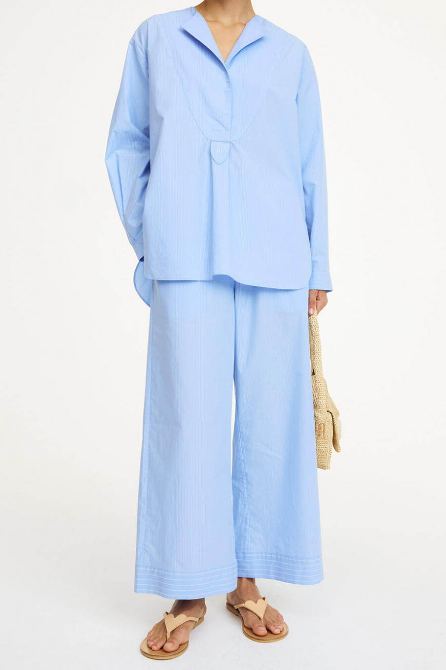 Mirabello Wide-Leg Trousers, Blue Iris Strip