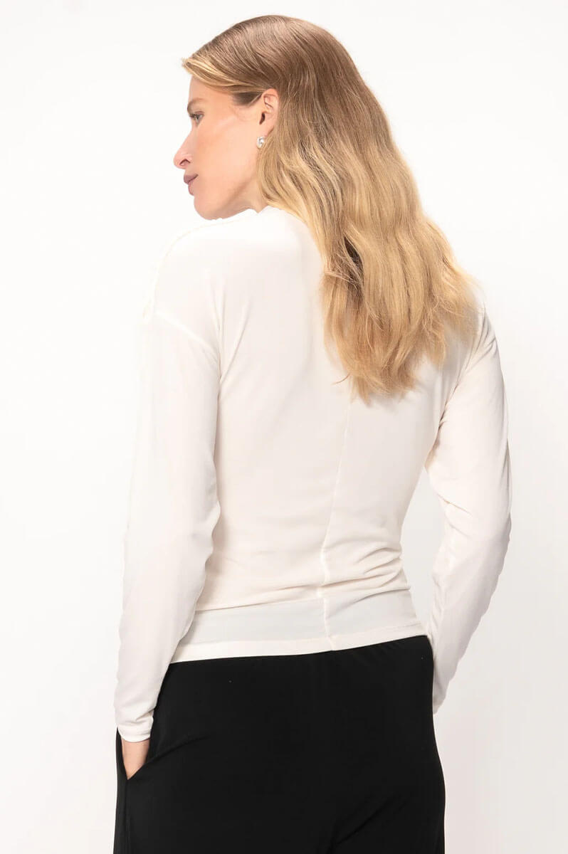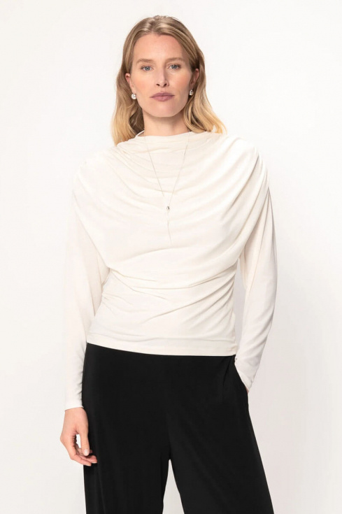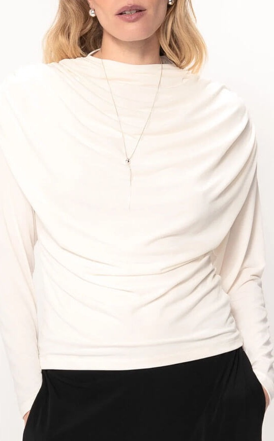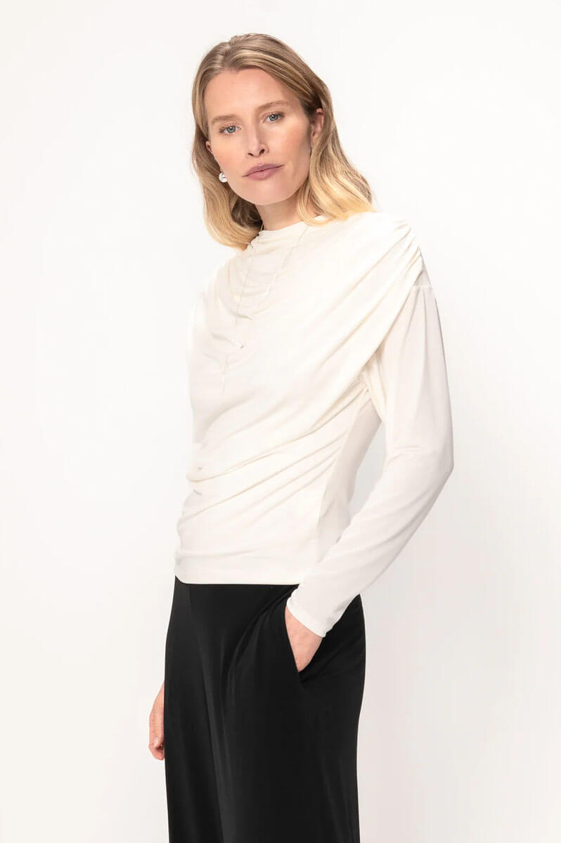 Viveh signature Mirel top is cut in smooth jersey with a softly draped front that shapes the neckline and upper body, while the lower section sits cleanly against the body. Thoughtfully designed for both effortless everyday elegance and occasional wear.Material: