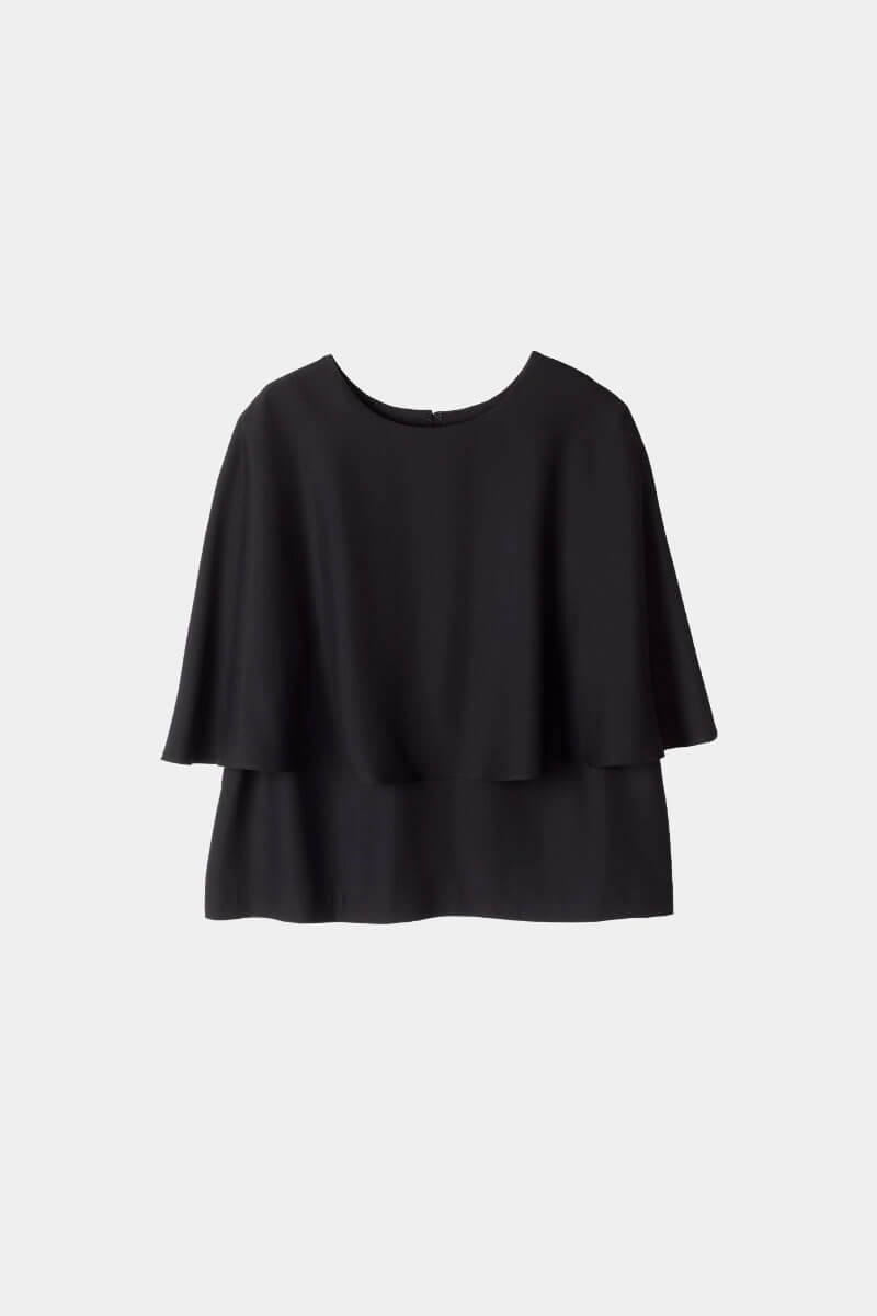 A cropped, sleeveless top in matte crepe with a boxy fit and a flowing cape overlay that adds soft movement. The clean silhouette offers a modern look – minimal yet full of presence. Wear with tailored trousers or style with high-waisted skirts for a balanced, graphic outfit. A piece that elevates any look without overpowering it.
