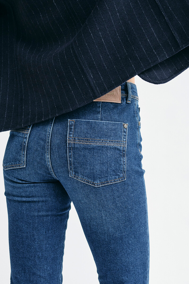 Ashley Otto is a pair of stylish jeans from the Ashley family, featuring a mid-rise waist. A five-pocket model with a flattering back pocket, straight legs, and ankle length. Most people choose their regular size — we find they run a bit smaller than some Mos Mosh styles.- 98% cotton