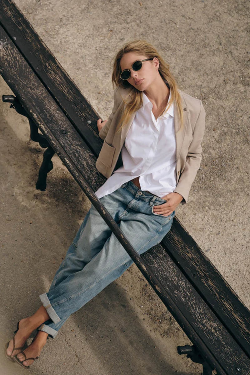 These boyfriend jeans offer a cool and effortless vibe with their relaxed silhouette. Crafted from soft denim, they provide the perfect balance of comfort and character for a modern everyday look. Pair them with a classic white shirt or a cozy knit for a simple yet stylish outfit.