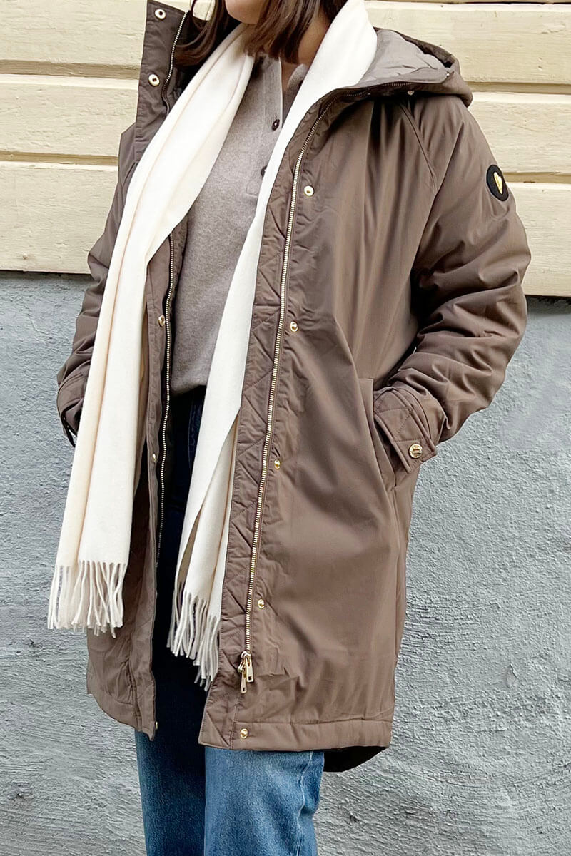 A nougat parka jacket combines function and style in the best way. With its practical and relaxed fit, it becomes the perfect outer garment for cold days. A timeless classic that gives a cool and urban look.Parkas in a oversize fit with a hood, closes with a zipper, pockets and slit back from MosMosh.
