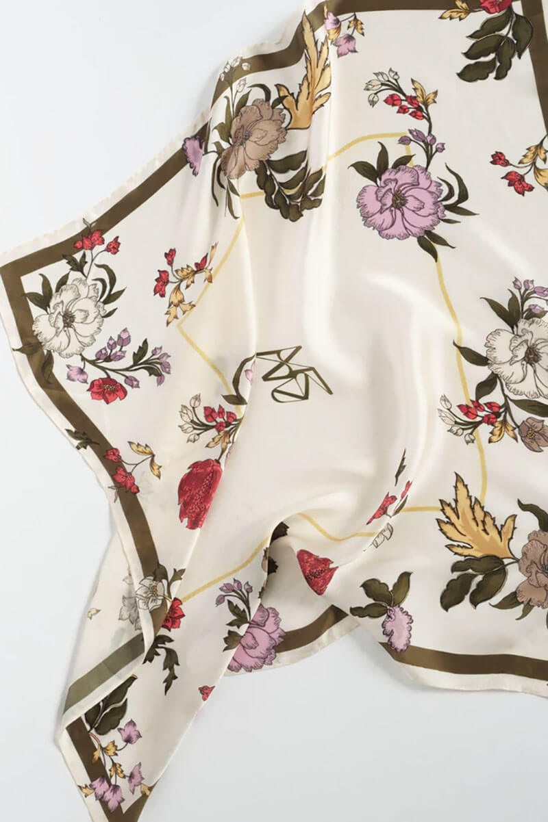 This beautiful scarf is designed in a light and soft quality, featuring an elegant floral pattern for a feminine and refined look. The artistic design makes it a stylish accessory that elevates any outfit. Wear it around your neck, in your hair, or tied to your bag for a personal touch.100% viscose