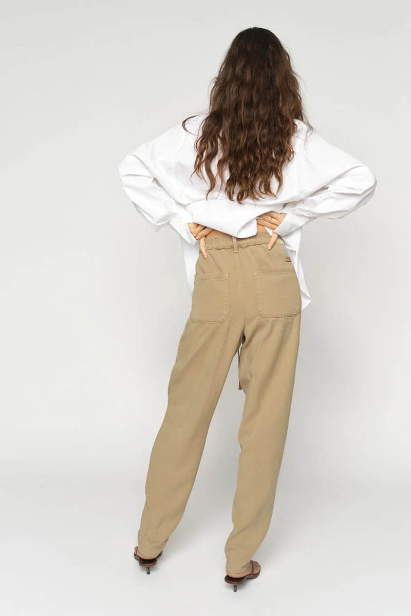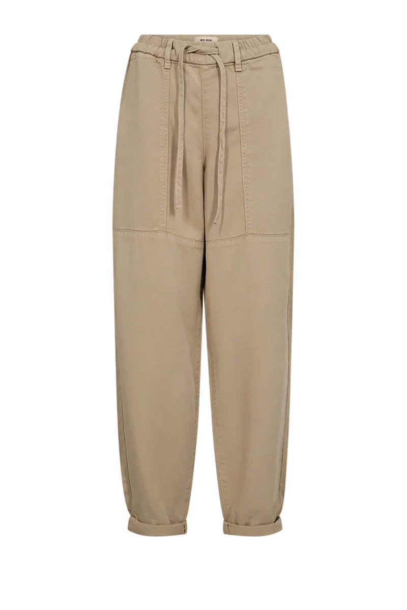 Soft, lightweight trousers from Mos Mosh, designed for a relaxed yet elegant feel. Featuring an elastic waistband, drawstring tie, and subtle seam details, they have a modern, utility-inspired look. Wear them with a tucked-in blouse or a simple t-shirt for an effortless yet well-thought-out style.