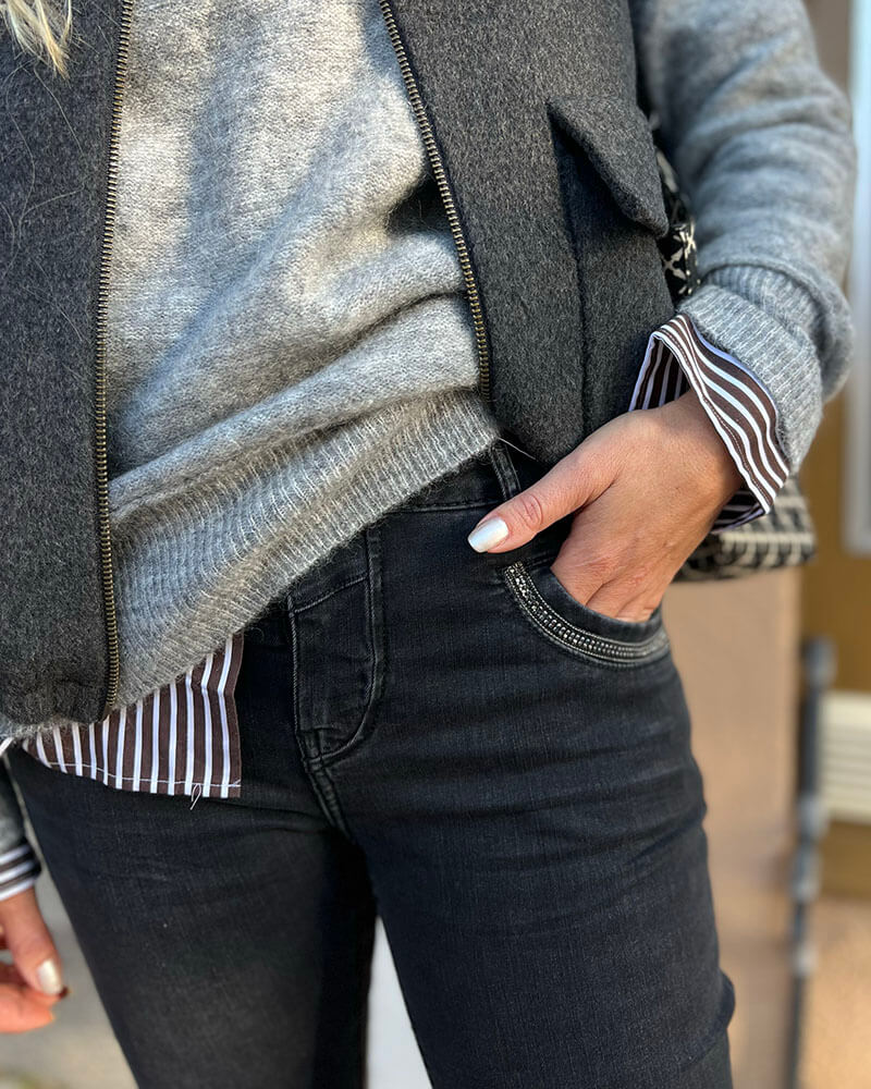 Finished with unique embellishments on the front pockets, they pair perfectly with cozy knitwear and ankle boots for a relaxed, warm look, or with a tailored blazer for a more refined ensemble.
