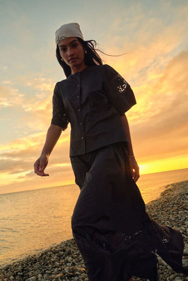 A skirt from Mos Mosh with delicate lace details, equally beautiful for evening wear as for daytime styling with sandals.