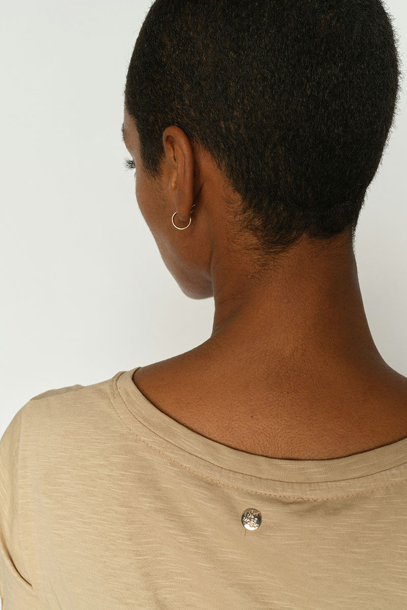 A timeless T-shirt with a touch of glamour. Crafted from soft organic cotton, it features a slightly fitted silhouette that enhances a feminine shape.