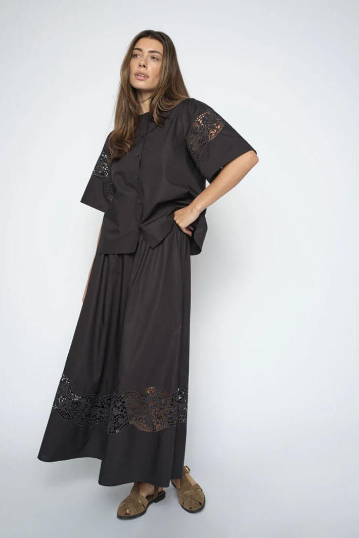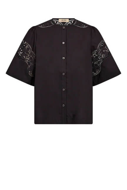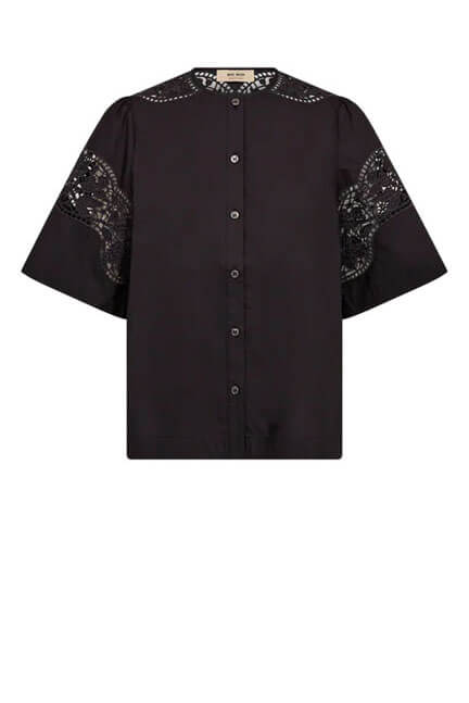 This lightweight blouse features a relaxed fit and short sleeves. Delicate embroidered details add a feminine touch, while the button closure and clean silhouette make it easy to style for both everyday wear and more polished looks. Light and comfortable to wear.