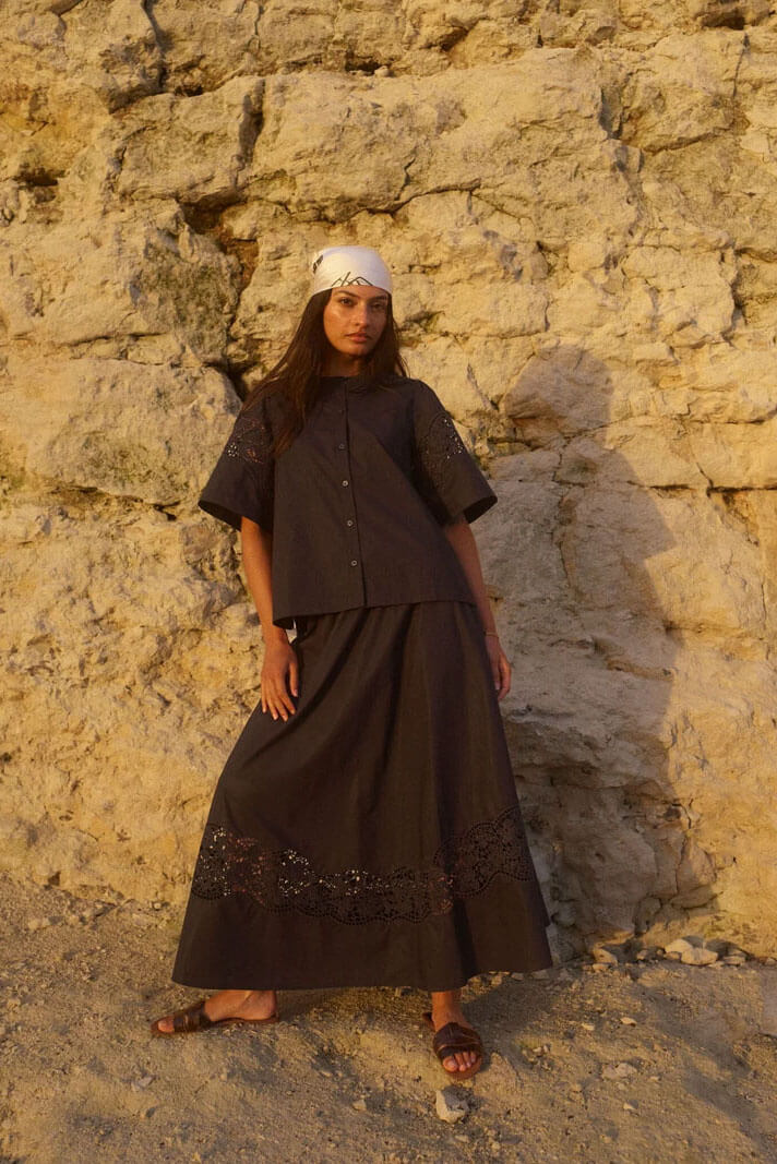 A blouse from Mos Mosh with beautifully refined details.