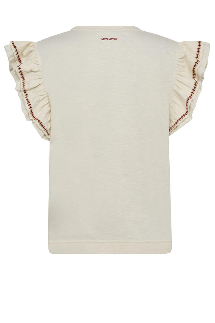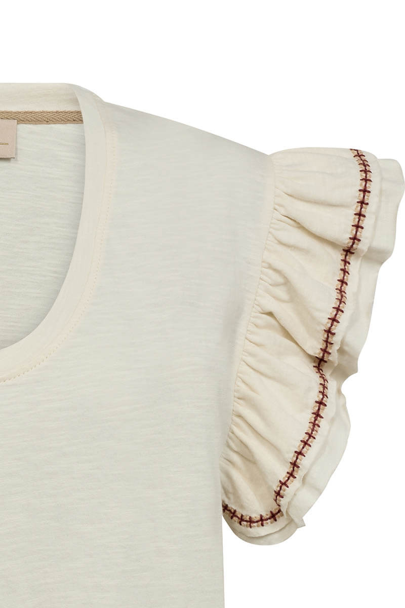 Stylish top in soft jersey with a smooth, comfortable feel and elegant details. Designed with ruffled sleeves and an embroidered trim, featuring a flattering round neckline.