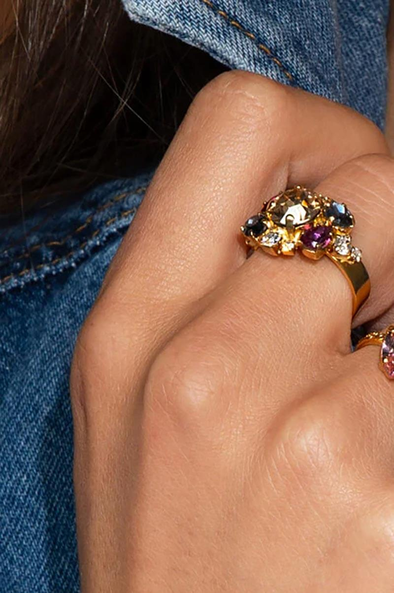 Adjustable ring with Swarovski crystals and with 18K gold from Caroline Svedbom.- Size: 3 x 1,5 cm