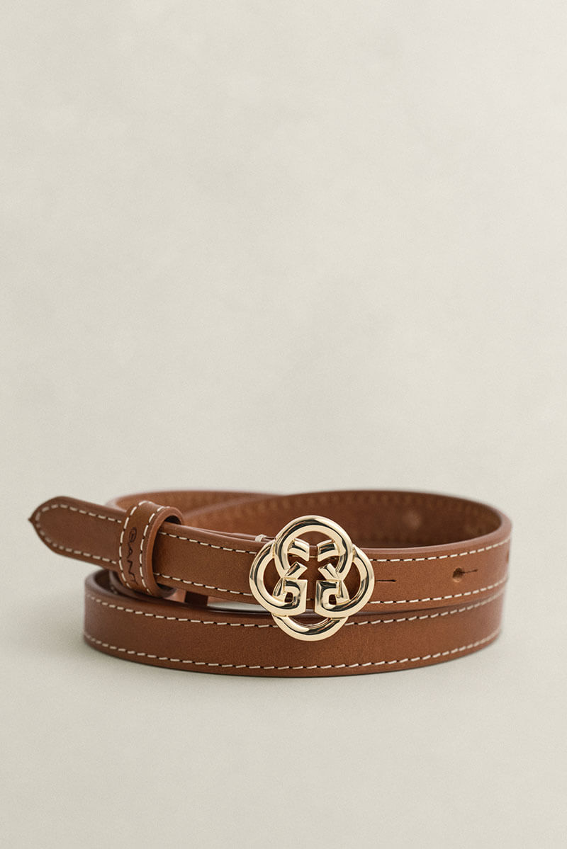 This leather belt is a timeless wardrobe staple, elevated by a chic monogram buckle at the front.Crafted from 100% leather, it features contrast stitching and a debossed Gant logo on the keeper for a refined finish.