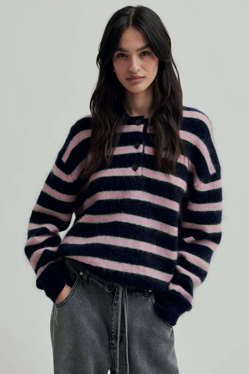 Striped knit sweater from Second Female – a true autumn favourite!Knitted in a soft and luxurious mohair-wool blend that feels amazing against the skin.