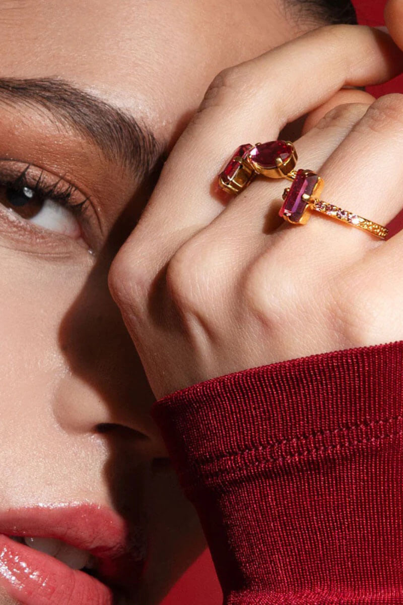 Adjustable ring with Swarovski crystals and 18K gold plating from Caroline Svedbom.- 100% Nickel-free