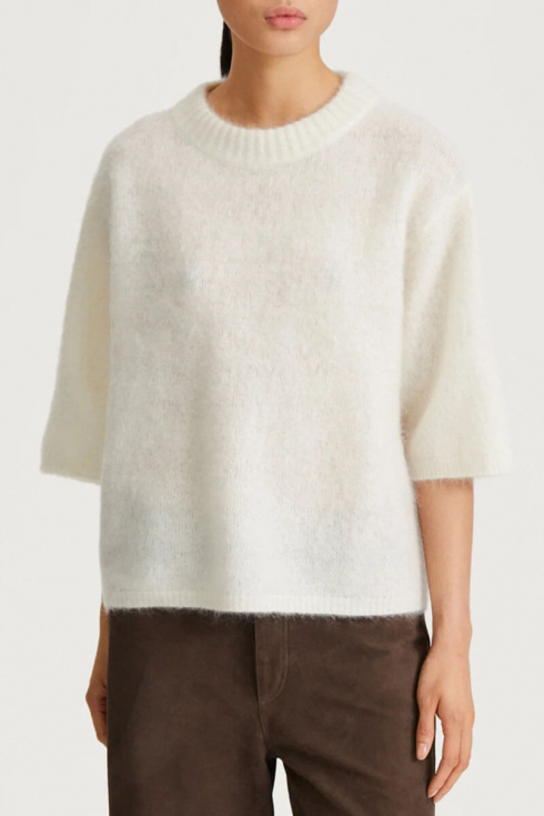 Step into the season in this elbow-length knit crafted from a soft mohair blend. With its straight fit and dropped shoulders, it creates a relaxed yet considered silhouette. A versatile piece that adds both lightness and warmth to any look.