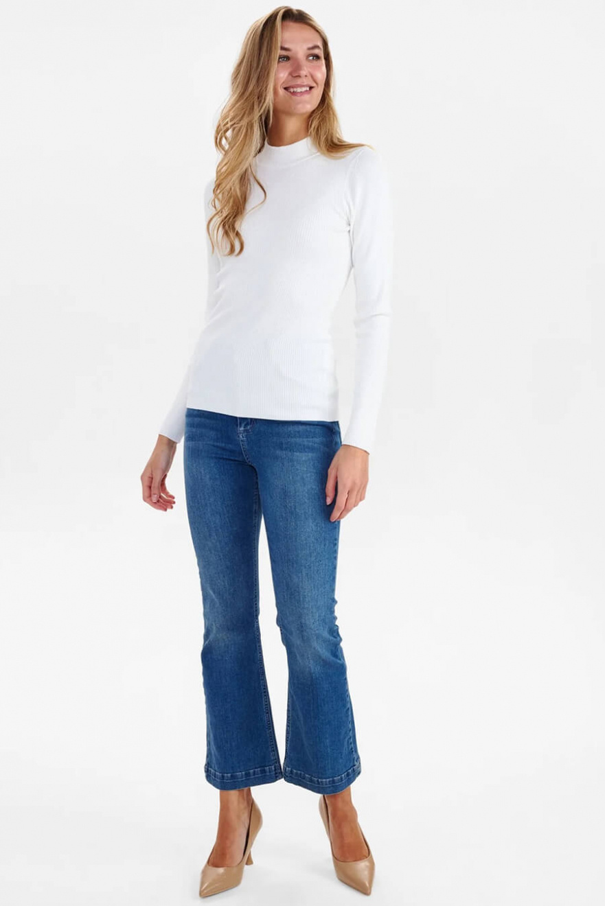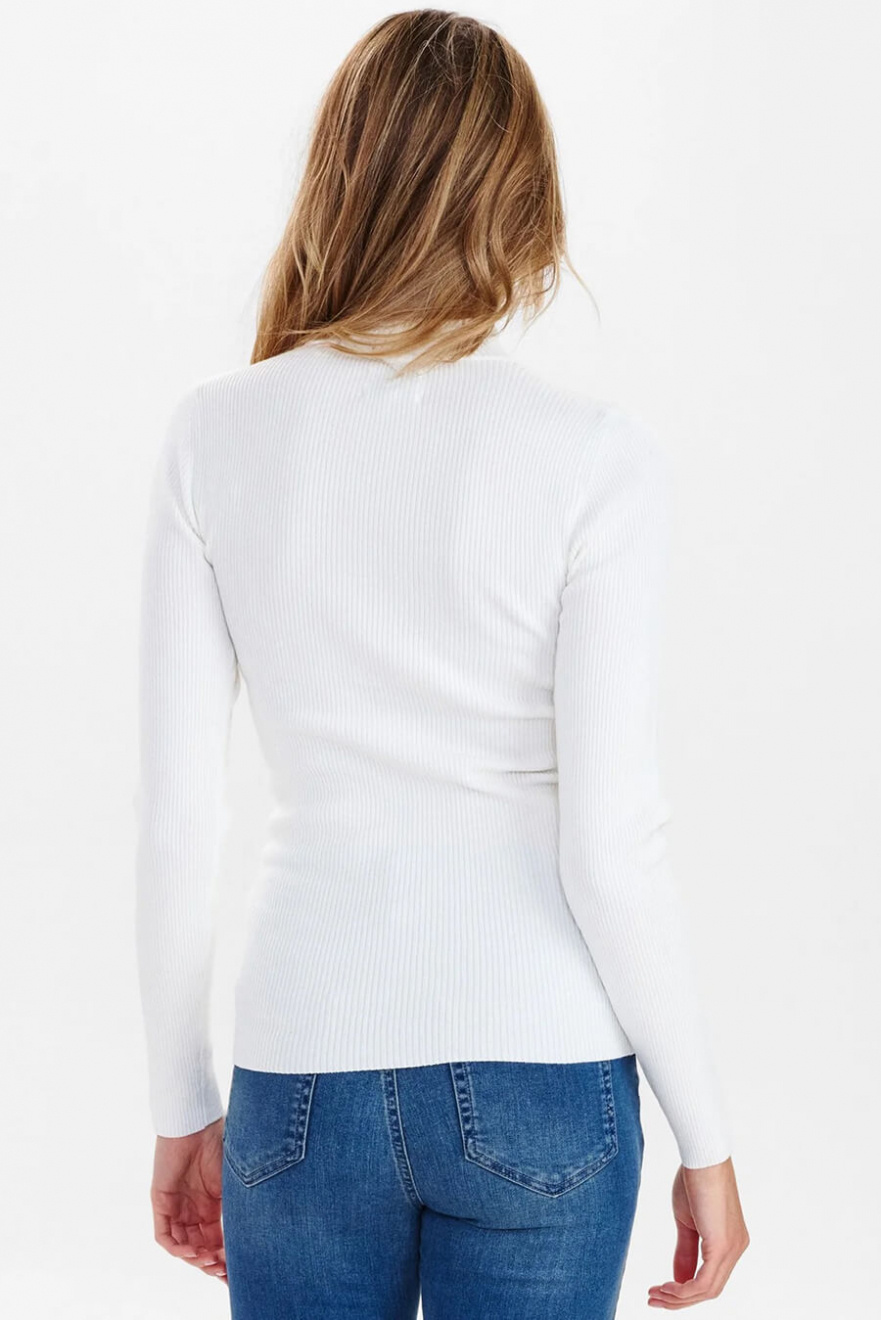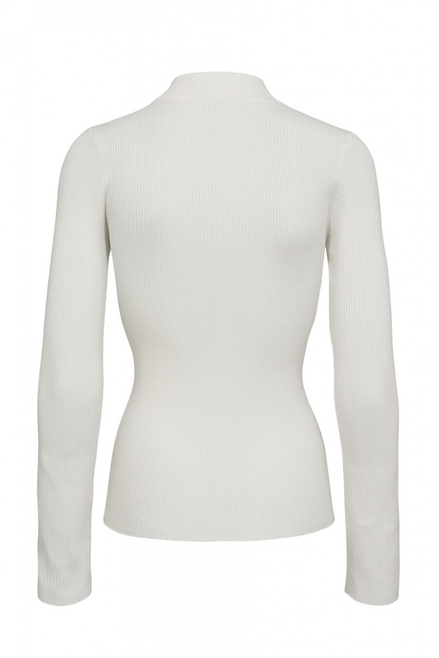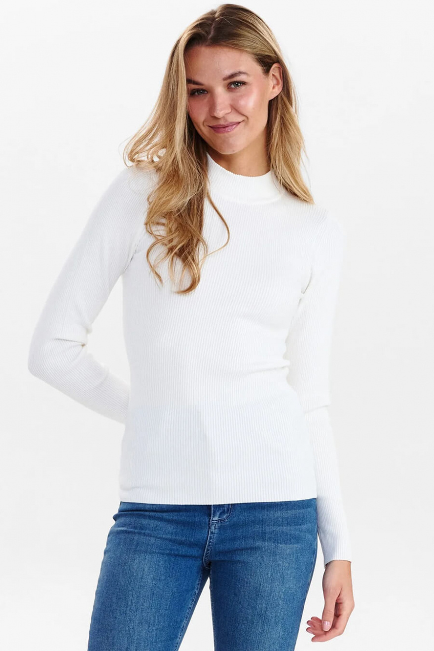 A white ribbed top with a short polo collar – the definition of minimalism with maximum impact. The slim fit creates an elegant silhouette, perfect for layering or as a statement piece. A timeless choice that will instantly elevate your wardrobe!Ribbknitted top in a soft viscose blend with long sleeves, slim fit and short turtleneck from Nümph.